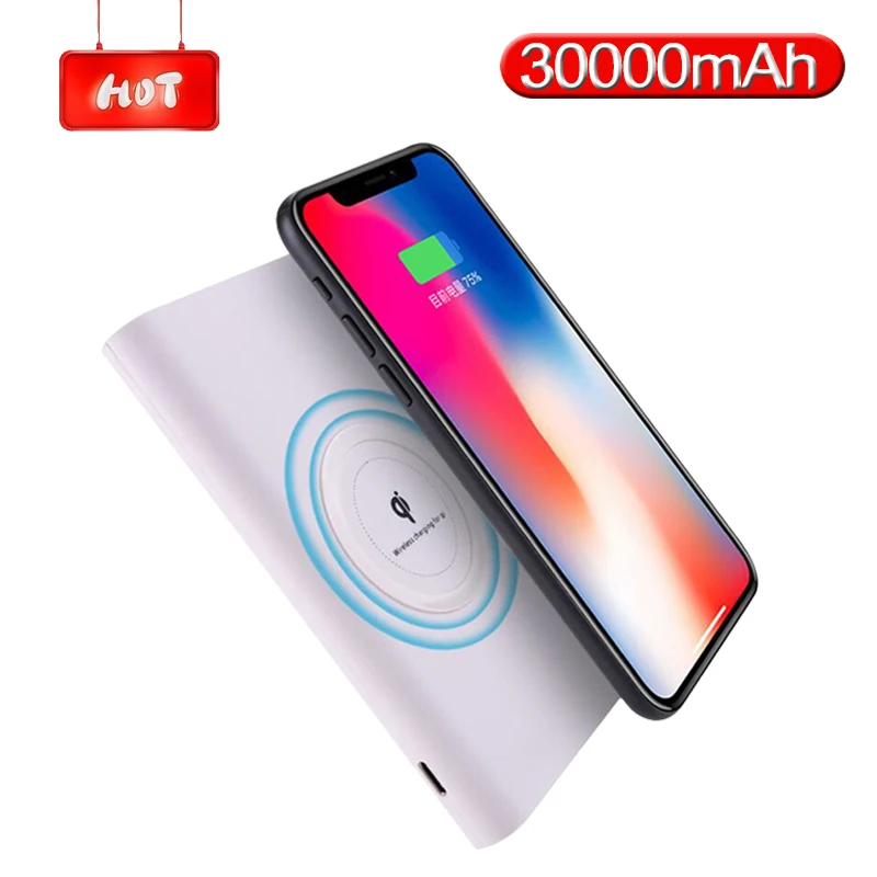 Портативное зарядное устройство 30000 мАч Беспроводное зарядное уст...