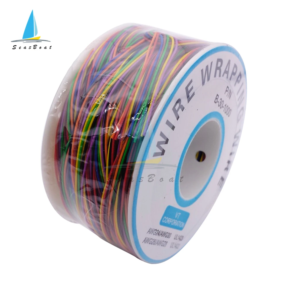 1 x Один рулон 8 цветов 30AWG провод для обертывания Луженая Медь твердый ПВХ изоляционный кабель 280 м