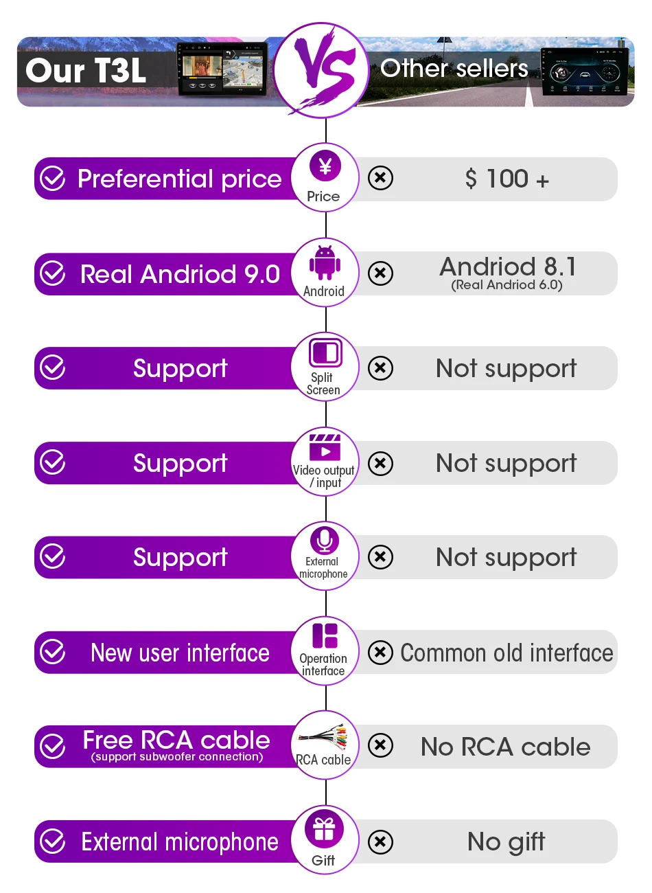 ★Часто задаваемые вопросы для покупки: Продукт поддерживает кнопки управления рулем Поддержка камеры заднего вида (Оригинальная камера заднего вида требует canbus) Поддержка неоригинальных камер (поддержка многофазных механизмов) Поддержка оригинальных функций автомобиля, таких как настройки кондиционера (требуется canbus, более оригинальные функции автомобиля связаны с оригинальными автомобилями) ★Подходит ли для вашего автомобиля?: 1. Проверьте соответствующую модель и год продукта и автомобиля 2. Сравните место установки продукта с автомобилем, который необходимо обновить 3. Проверьте, подходит ли интерфейс шнура питания для вашего автомобиля (Примечание: Нет необходимости подключать все интерфейсы оригинального автомобиля) 4. Если вы все еще не можете определить, пожалуйста, отправьте нам Оригинальное изображение места установки автомобильного радио (спереди) и оригинальное изображение заднего интерфейса радио. Срок гарантии нашей продукции составляет один год, а срок службы-один. В том случае, если вы дадите нам 5-звездочный Отзывы и Поделитесь фотографиями на AliExpress, мы продлим срок гарантийного обслуживания на 6 месяцев. В то же время, Отзывы высокого качества будут иметь возможность получить ограниченные подарки. Реальная система Android 9,0, поддержка разделенного экрана приложения, делает ваше использование более удобным, поддерживает более новейшие приложения. Новейшие технологии, используя передовые навигационные решения Android, поддерживает больше пользовательских настроек и открывает больше возможностей для пользователей. По сравнению с оригинальным автомобилем, экран больше, цвета более яркие, и он поддерживает просмотр под разными углами. Новая рама сделана в соответствии с оригинальным автомобилем, который идеально сочетается с вашим автомобилем и прост в установке. Основной драйвер использует навигацию по карте на левом экране, а второй пилот или задний ребенок (через видеовыход) наблюдает за любимой телевизионной программой на правом экране. Поддержка раздельного экрана любых 2 приложений, сочетающихся по желанию. Поддержка видео и DVR приложения плавающего окна, настроить положение дисплея, и сделать ваш опыт вождения полный крутых цветов. Поддержка заднего видеовыхода, автомобиль по-прежнему может удовлетворить развлекательные потребности детей в задней части, принимая во внимание вождение. Встроенная настройка по умолчанию составляет 12 эквалайзеров (до 32 эквалайзеров), а объемный звук можно настроить одновременно, позволяя вам погрузиться в замечательную музыку. Поддерживает почти все приложения карты. Перед отправкой ваших любимых продуктов, мы установим для вас последнюю автономную карту вашей страны, и карта будет обновляться через регулярные промежутки времени. Конечно, вы также можете использовать онлайн-карты.