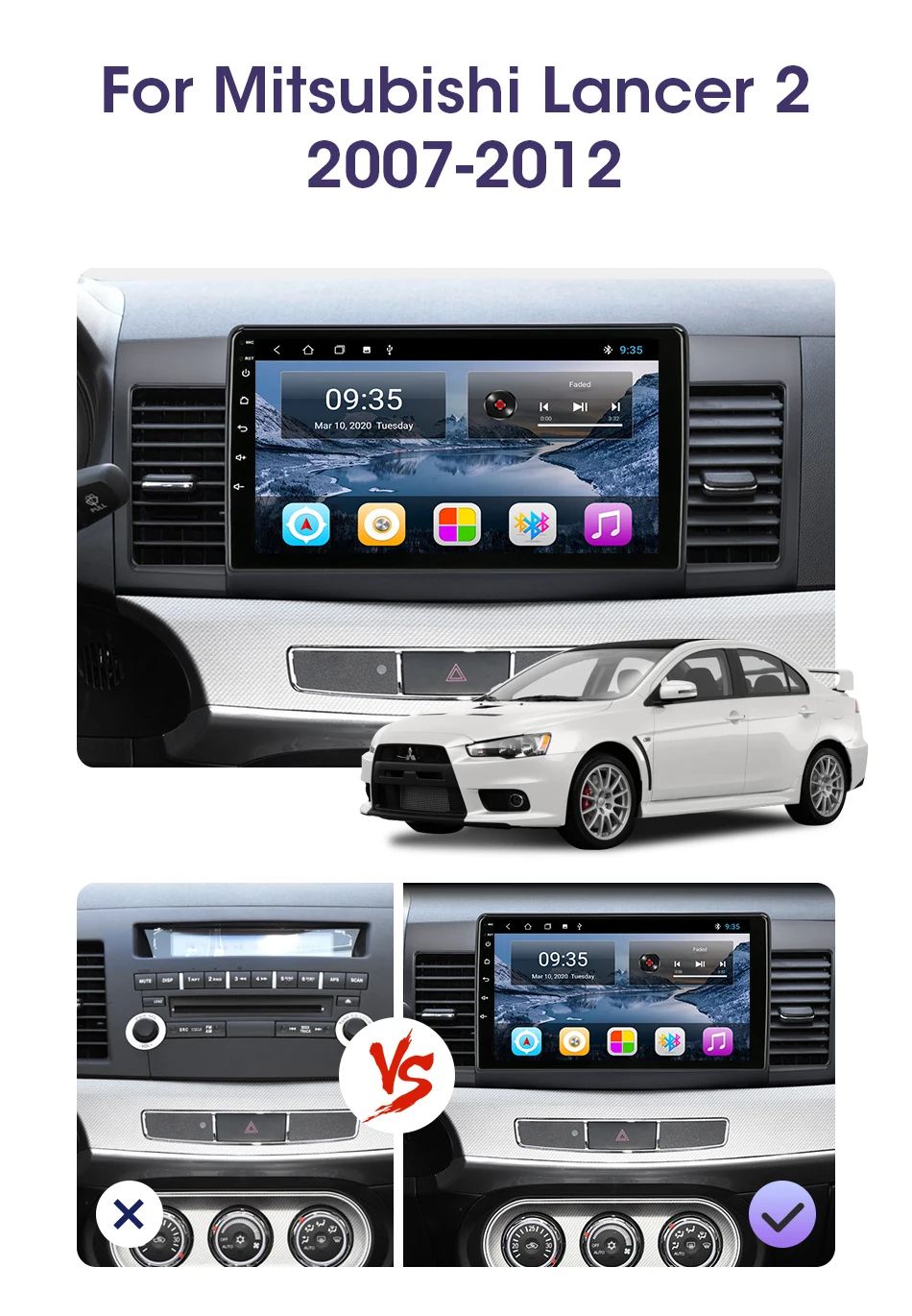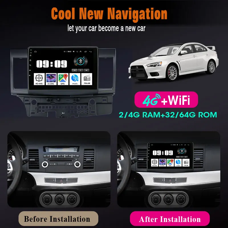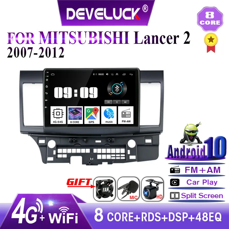 Автомобильная Мультимедийная система, проигрыватель на Android 10,0, 4 Гб ОЗУ, 64 Гб ПЗУ, с 10 "экраном, GPS, 4G NET, Wi-Fi, RDS, для Mitsubishi Lancer 2, 2007-2012, типоразмер 2DIN