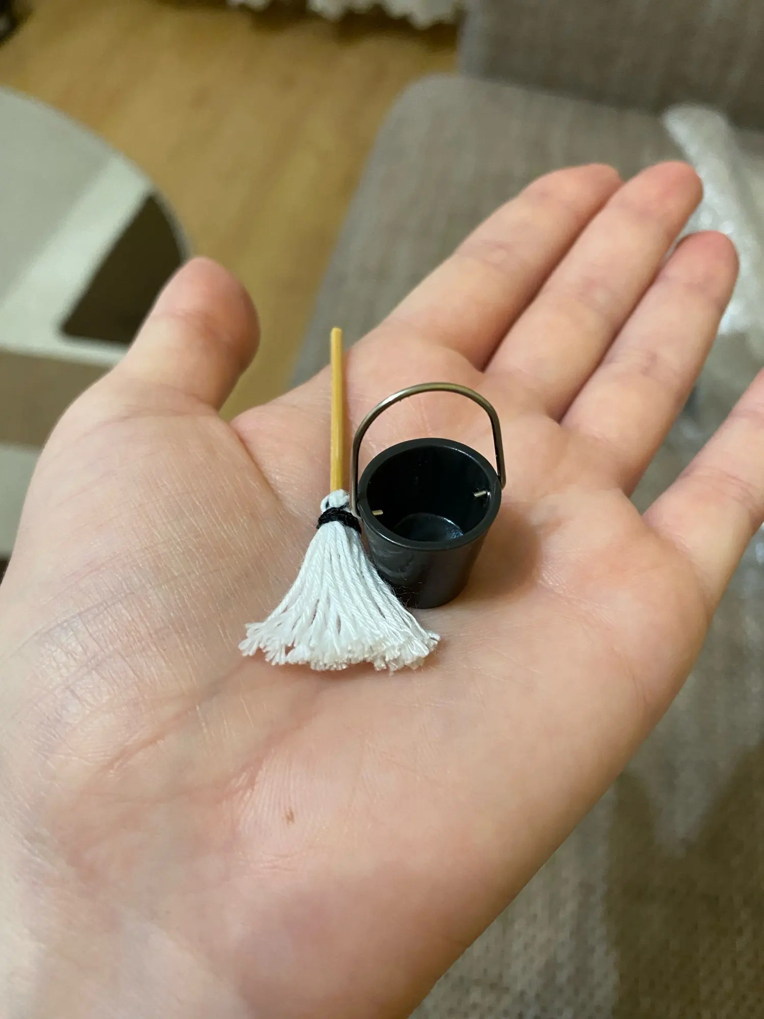 Очень симпатичное ведро со шваброй. Сделано хорошо. Подошло для зверей из Sylvanian Family. Быстрая доставка. Спасибо продавцу.