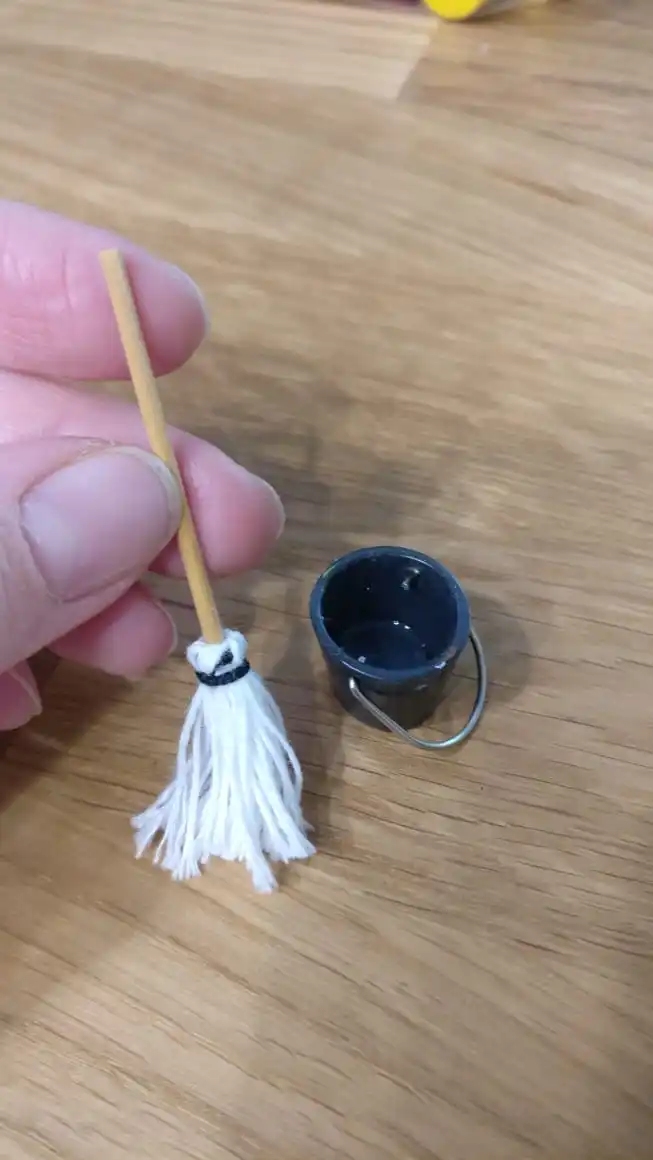 Я хотел это для кукольного домика моей дочери, и это идеально. Очень хорошо обработанная метла и ведро.