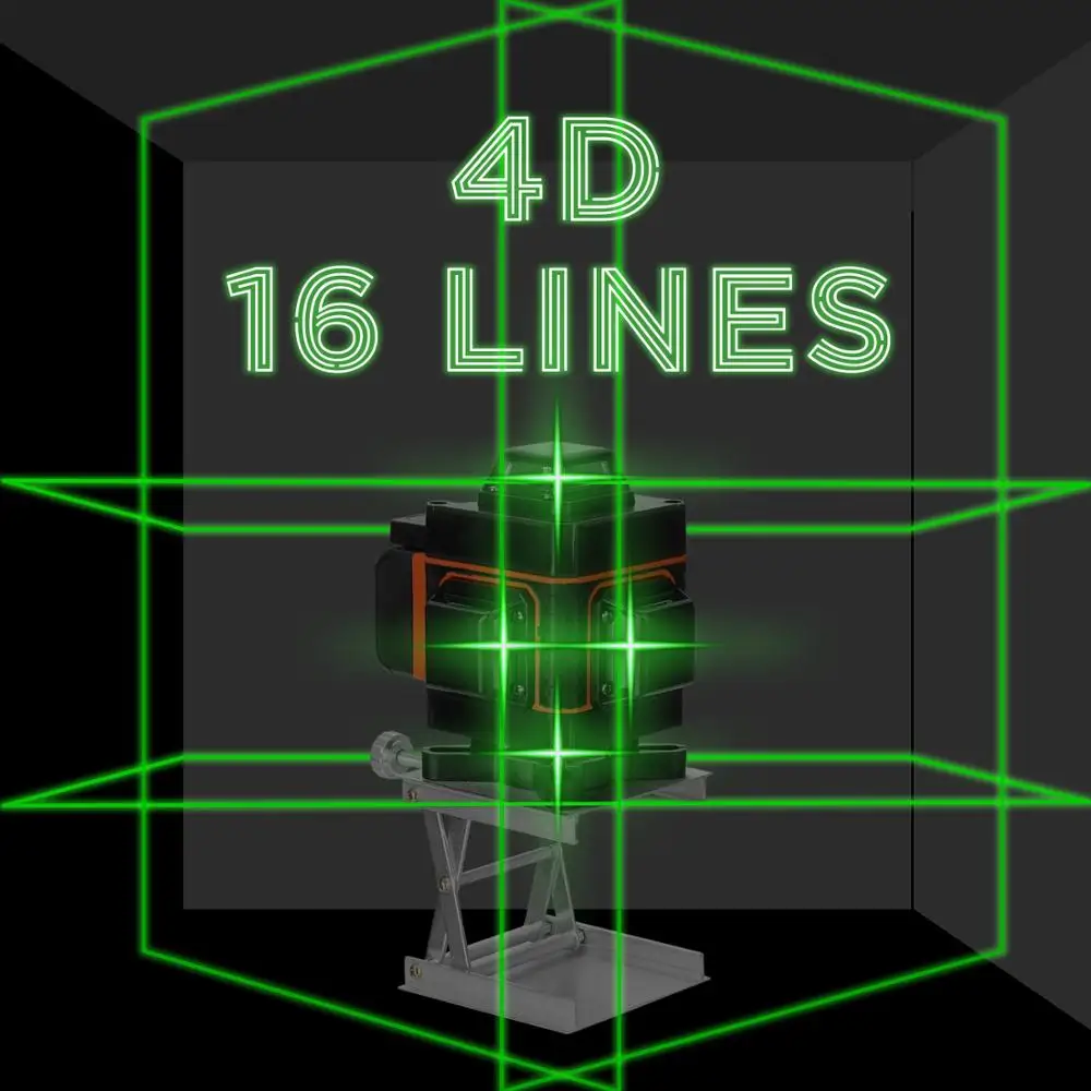 Лазерный уровень, самонивелирующийся, 16 линий, 360 градусов, зеленый лазер