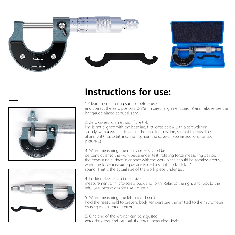 микрометр приехал вовремя и без повреждений. качественный и вполне точный рабочий инструмент. проверял на щупах, измеряемые размеры соответствуют. использовал для измерения толкателей при регулировке клапанов. покупкой доволен, продавца рекомендую.