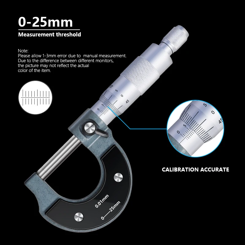 Штангенциркуль XCAN 0-25 мм 0,01 мм, металлический микрометр для измерения Калибр для точного измерения штангенциркуль, измерительные инструменты