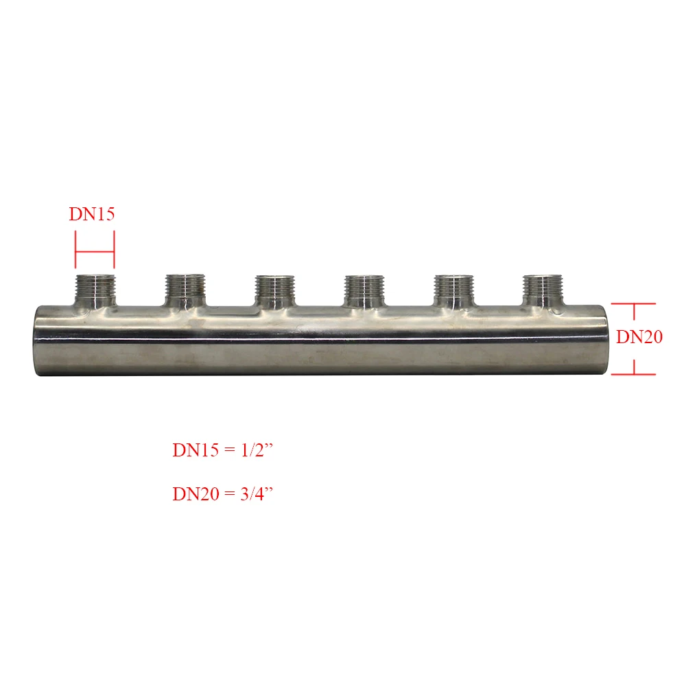 3/4*1/2 коллектор распределения воды из нержавеющей стали для системы подогрева пола (2-12 портов) один конец открытый один конец закрыт