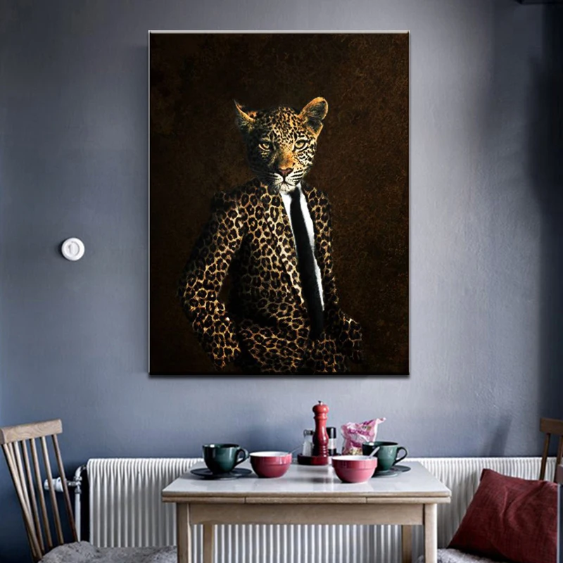 Винтажная картина с головой леопарда, животное, искусство джентльмена, холст, картина на стену для гостиной, настенное украшение