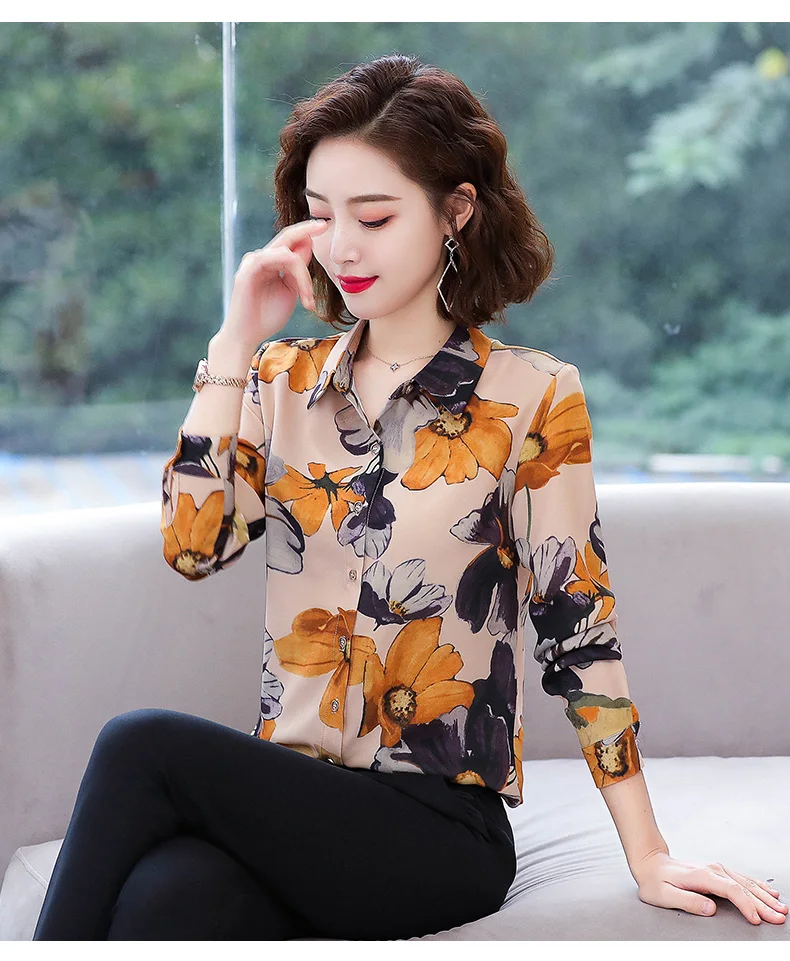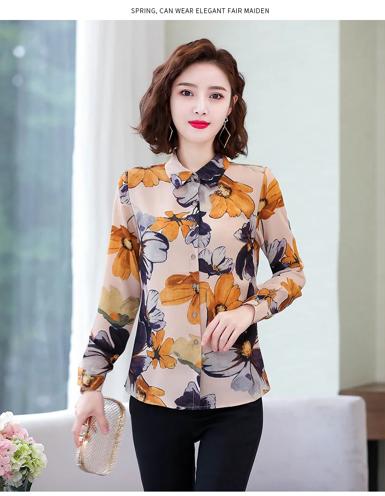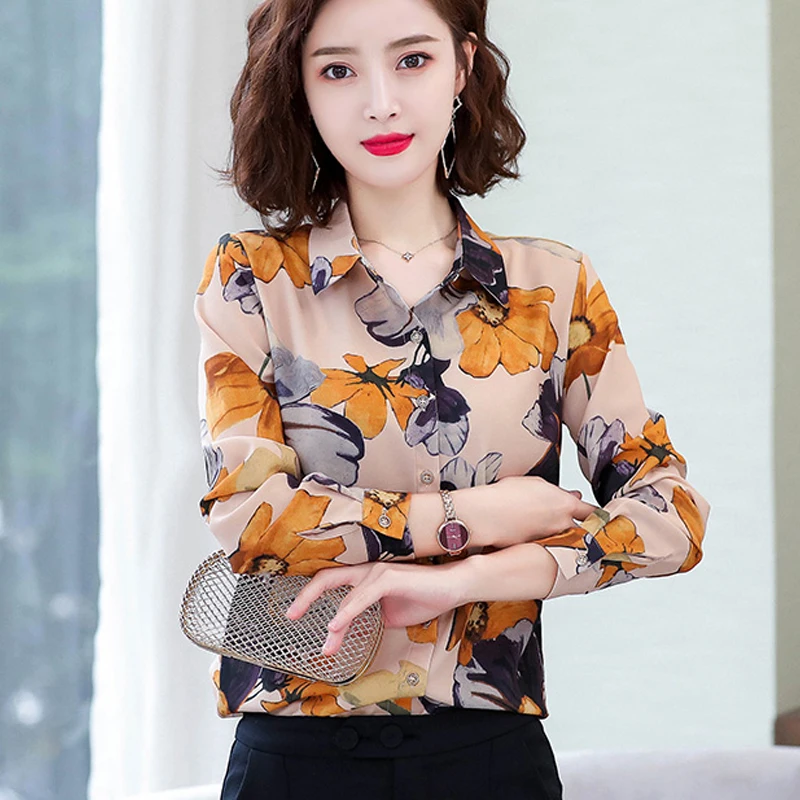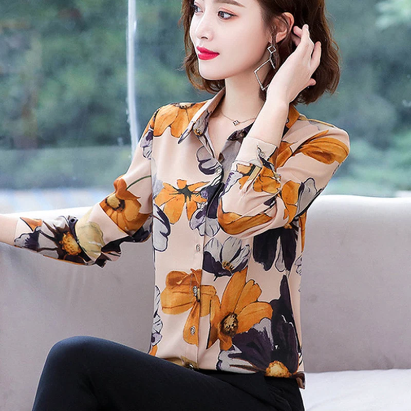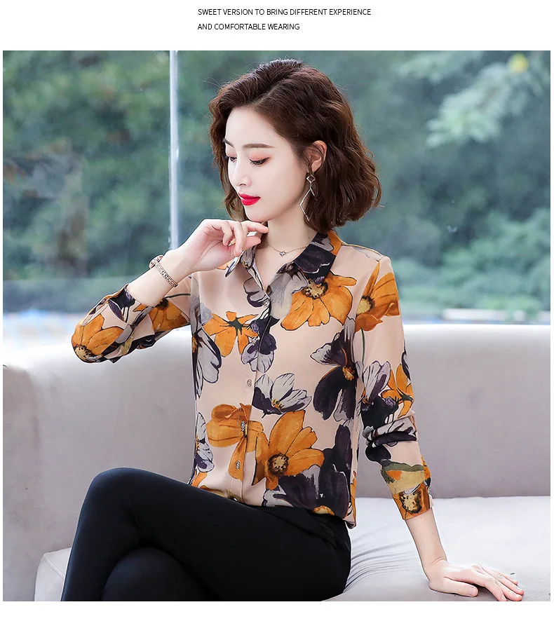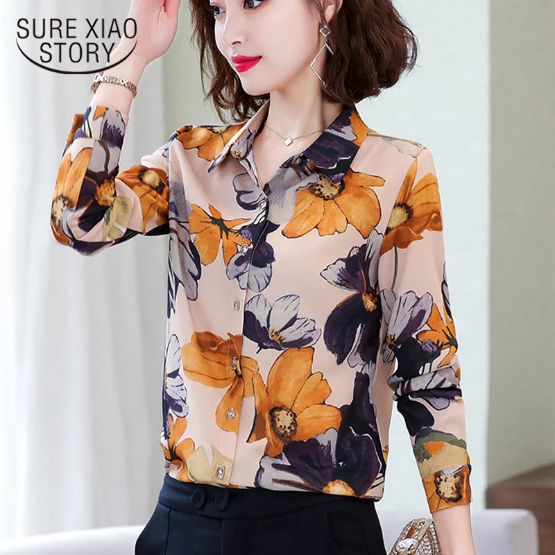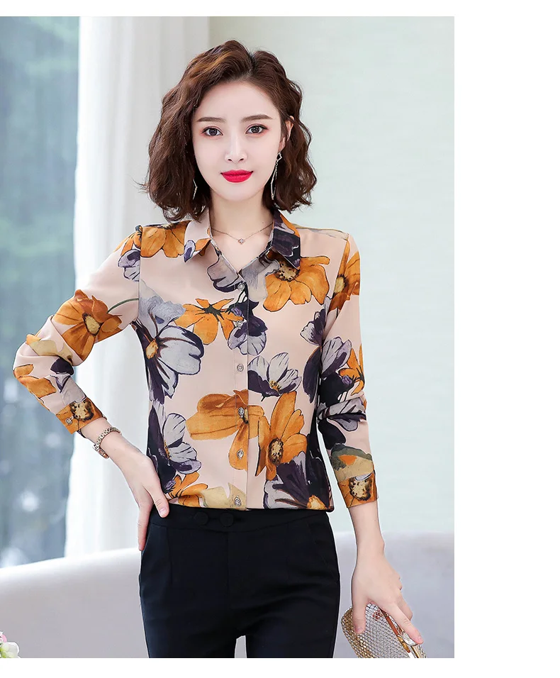 Женская шифоновая блузка, кардиган с цветочным принтом и длинным рукавом, 2021, размера плюс, S-4XL, осенняя, 10474