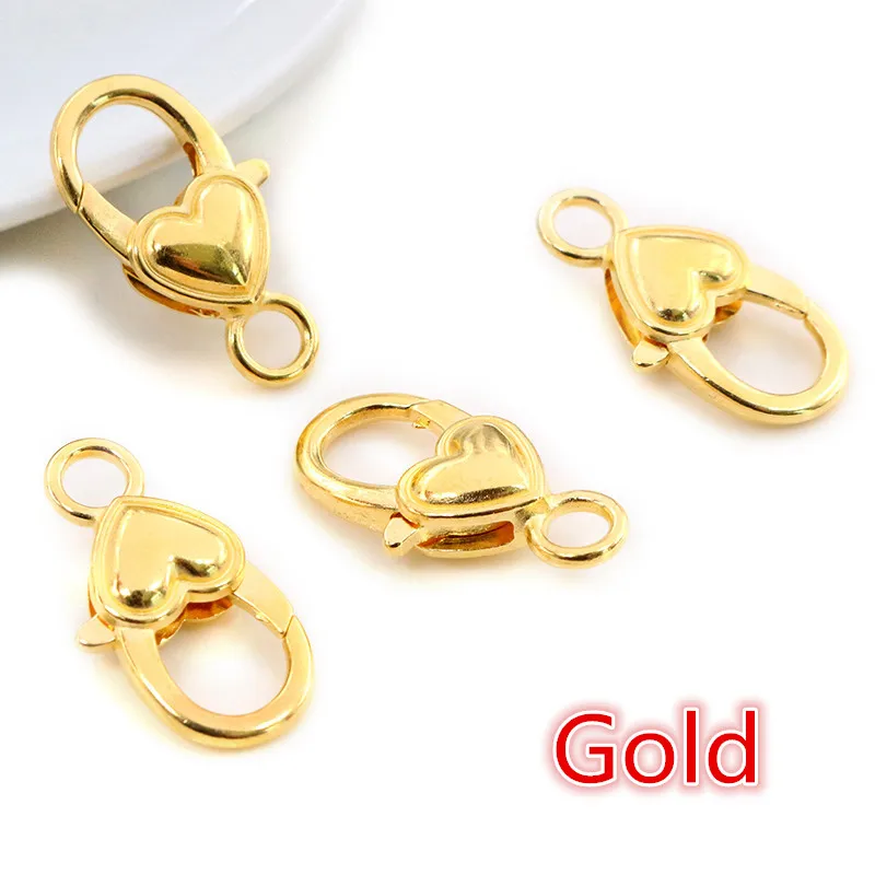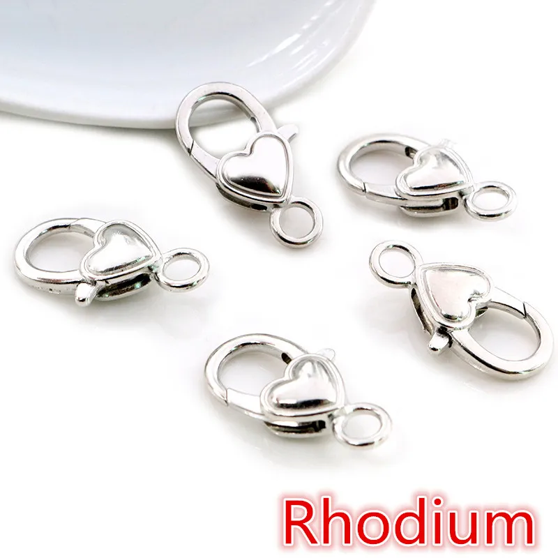 10 шт.лот 26x19 мм Позолоченные Родиевые ювелирные изделия в форме сердца, крючки с застежкой для ожерелья и браслета, сделай сам