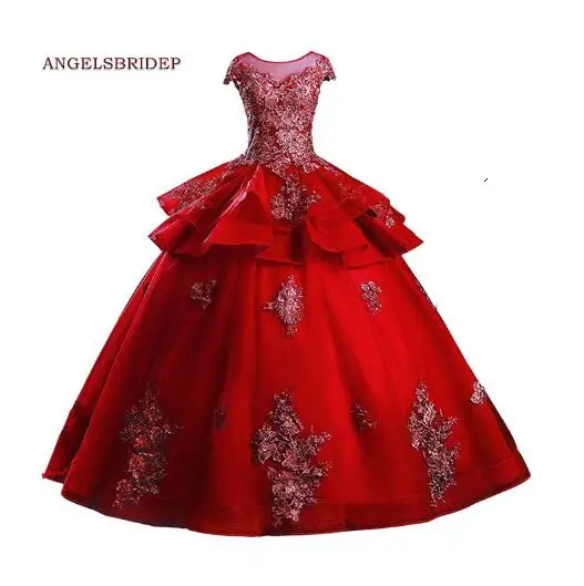 Платья с отвесным вырезом ANGELSBRIDEP Quinceanera Vestidos De 15 Anos с аппликацией в пол, фатиновые платья Золушки для дня рождения