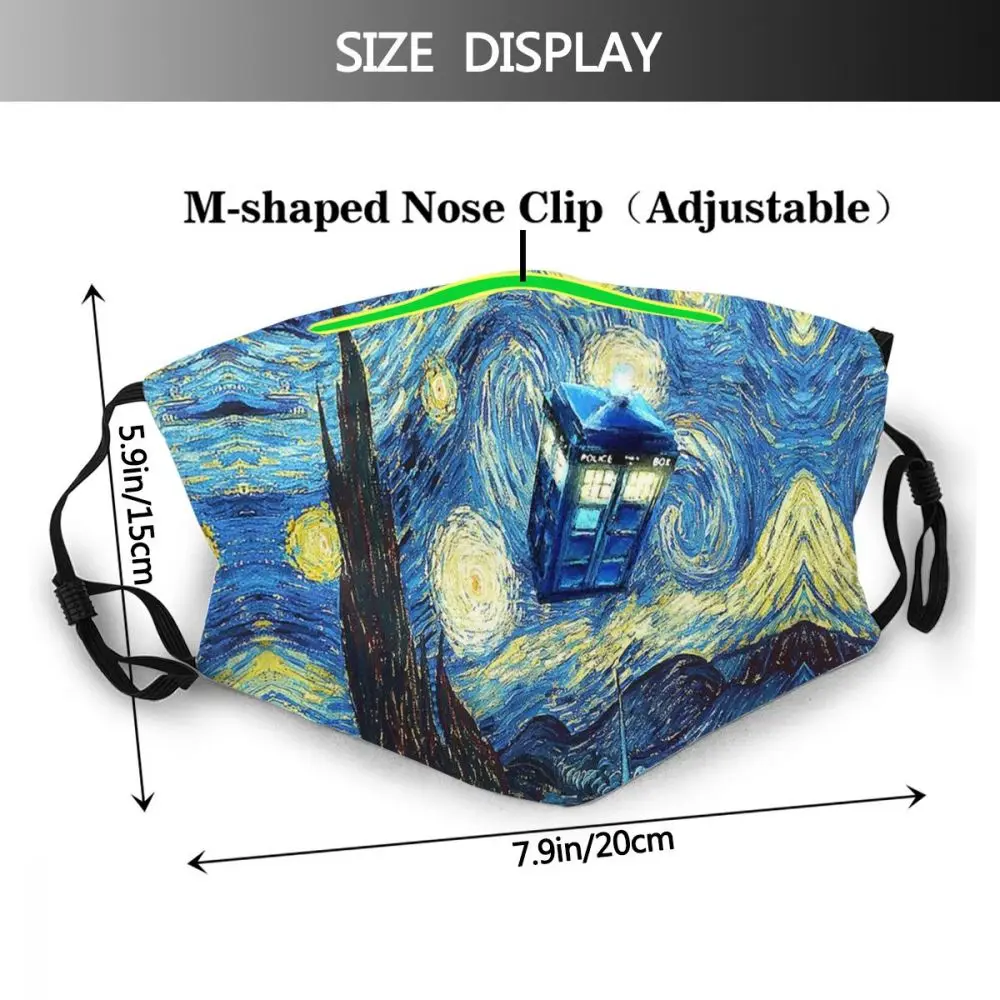 Маска для лица Tardis для рта, модная маска для лица Ван Гога с фильтрами, милая маска для взрослых