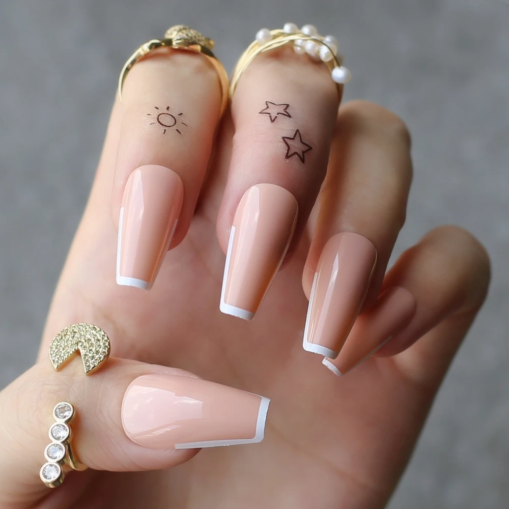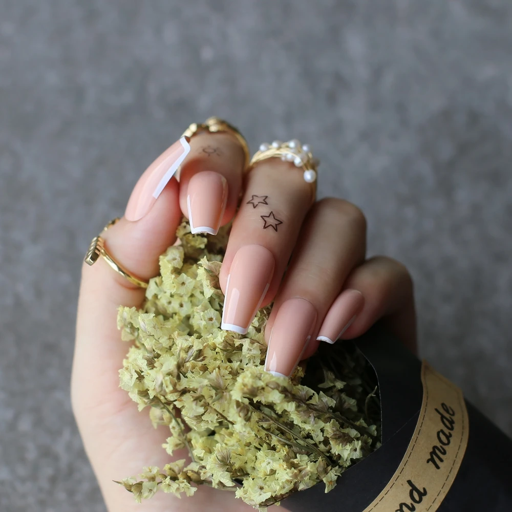 Гвозди с белым наконечником, УФ, французские наконечники, глянцевые гвозди нюдового цвета, изысканные нюдовые, с небольшим наконечником