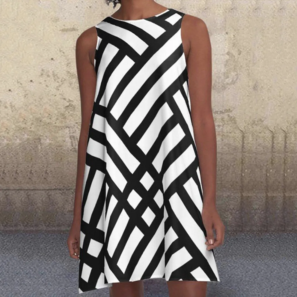 40 # летнее женское платье 2020 богемное мини-платье Женская мода с круглым вырезом без рукавов с принтом ТРАПЕЦИЕВИДНОЕ женское пляжное платье