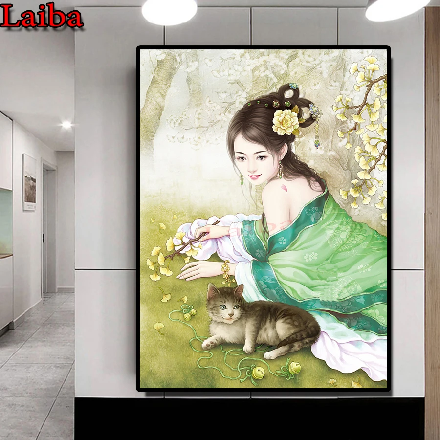 Алмазная живопись Античная Азия, алмазная 5d Вышивка сделай сам, полноразмерная круглая Алмазная мозаика для девочек и кошек, новинка 2020