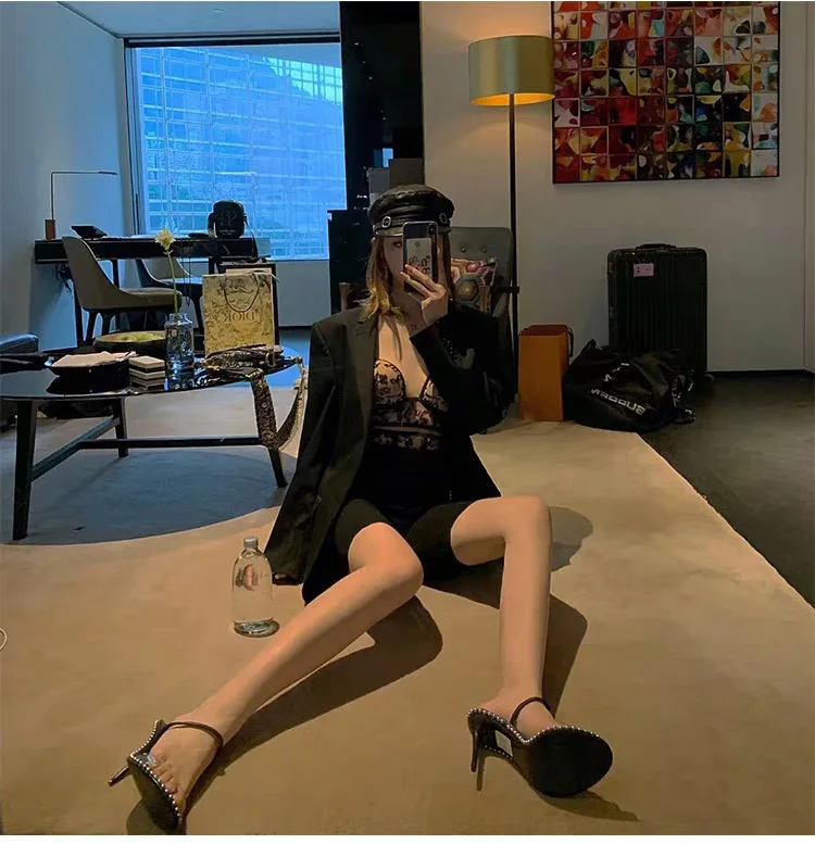 Роскошные пикантные босоножки со стразами; женские красивые сандали...