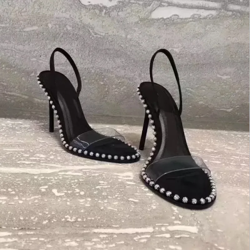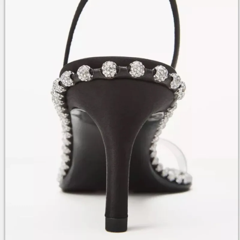 2021 г., новые стильные босоножки-стразы на шпильке женские вечерни...