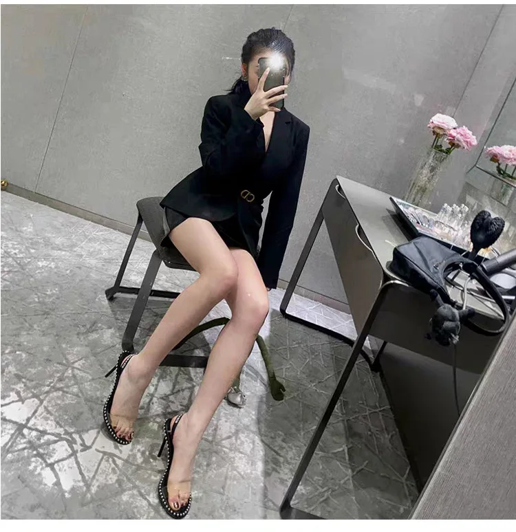 Женские босоножки на шпильке, прозрачные босоножки на высоком каблуке, со стальными ремешками и открытым носком, Новинка лета 2022
