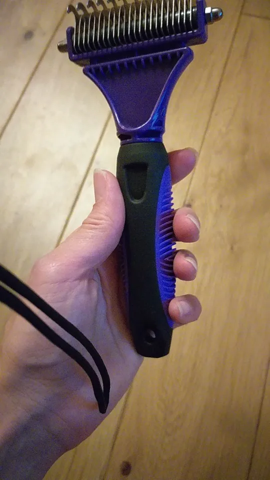На вид качественная чесалка, пробовал чесать хасок, не очень хорошо чешет, но это скорее всего из-за того, что я их ещё не разу не чесал, щенки 4 месяца. Думаю после купания легче будет, если не получится — напишу.