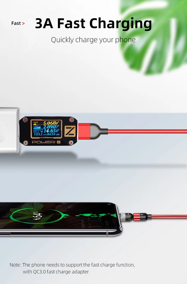 Магнитный кабель 3 А, кабель для быстрой зарядки Micro Usb типа C, магнитное зарядное устройство Usb C, провод Micro Usb, вращающийся на 540 , магнитный кабель