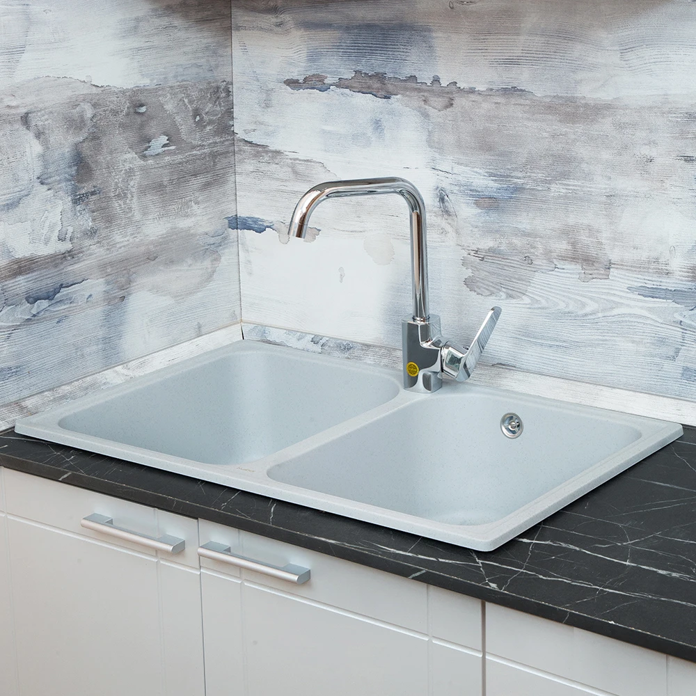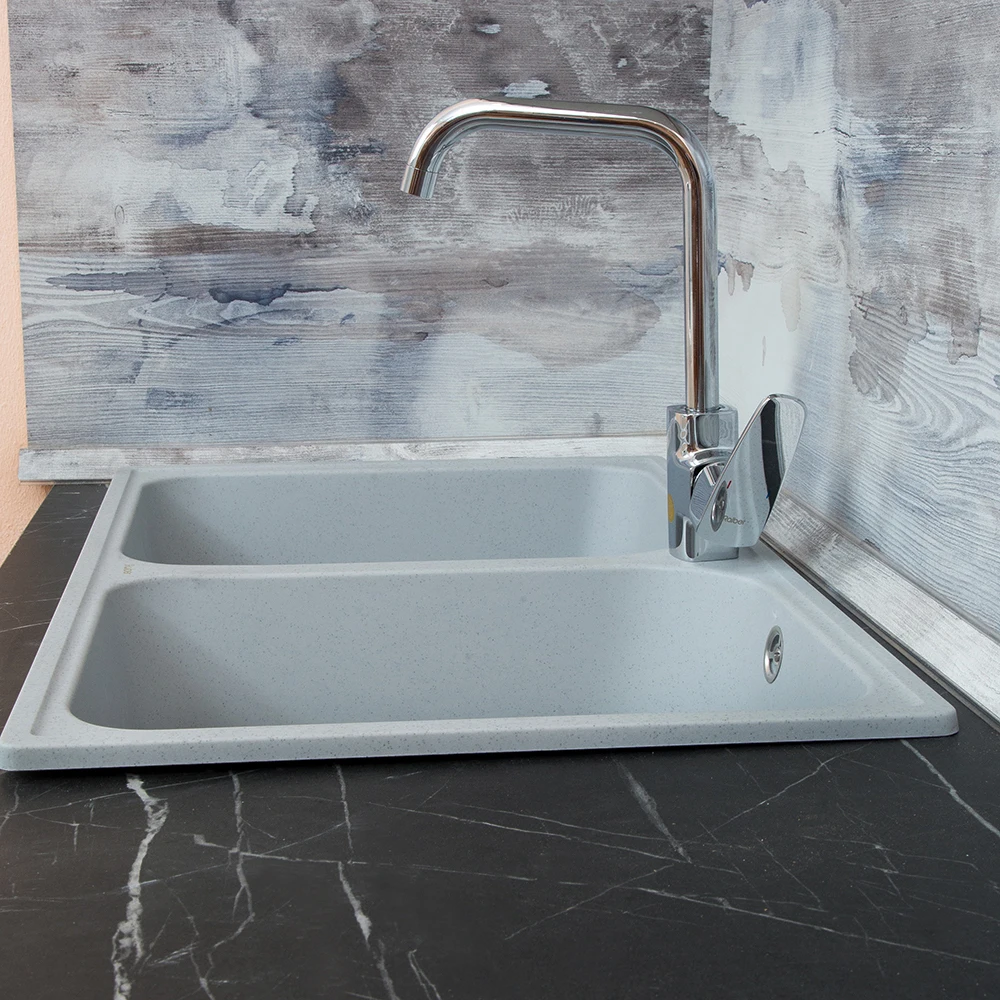 Ударопрочная поверхность кухонный мойки, устойчива к высоким температурам. Для производства продукции используются кристаллы кварца, что делает раковину для кухни эстетичными и максимально долговечными.