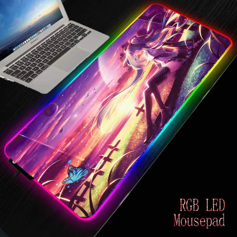 Mairuige DIY аниме девушка Hatsune Miku RGB светодиодный игровой большой коврик для мыши светодиодный USB клавиатура компьютерный Настольный коврик для мышки аксессуары
