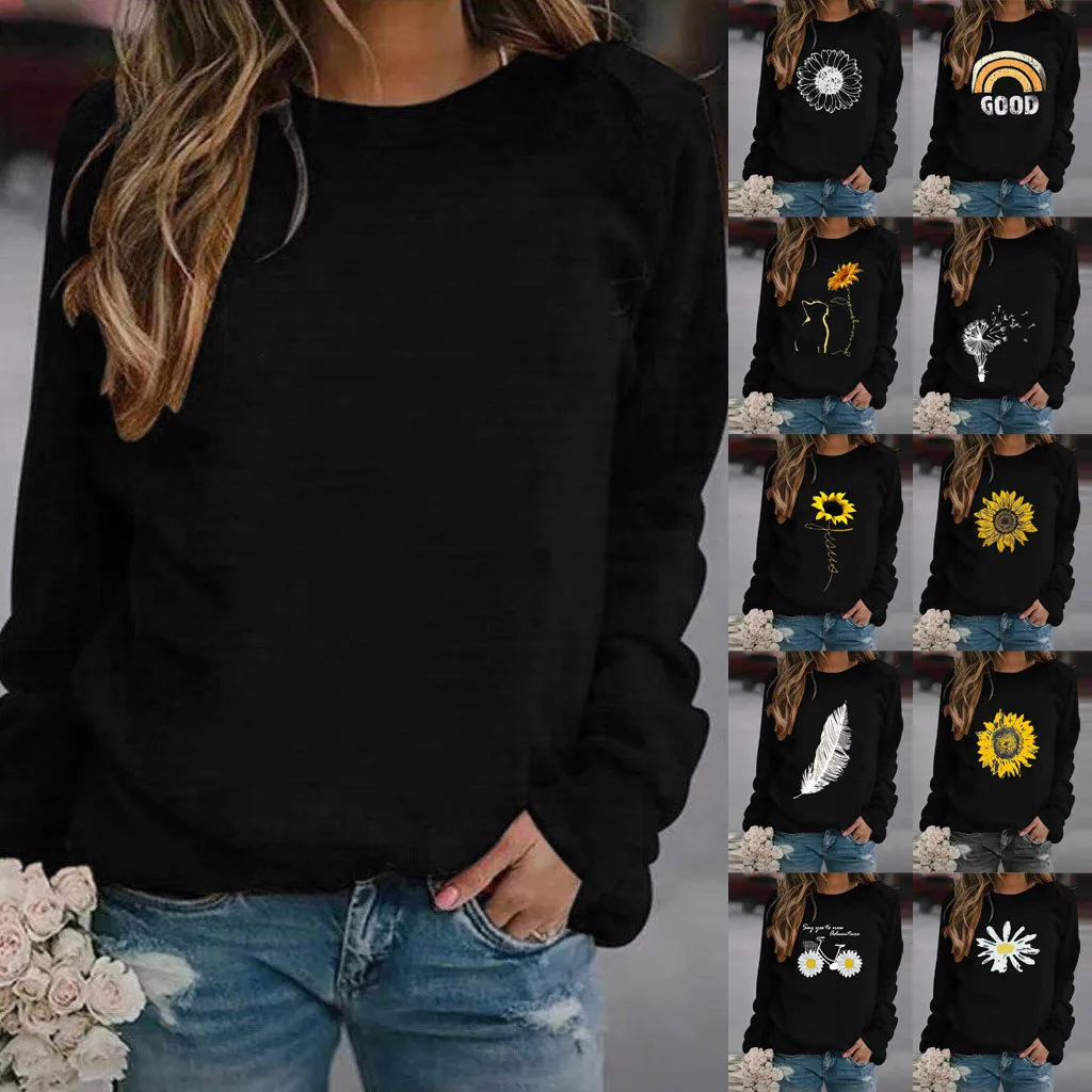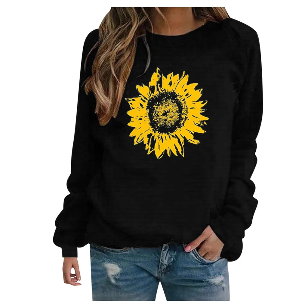 Размера плюс толстовка в стиле Харадзюку, топы с принтом подсолнуха, женская Свободная Толстовка с длинным рукавом, женский осенне-зимний пуловер, уличная одежда