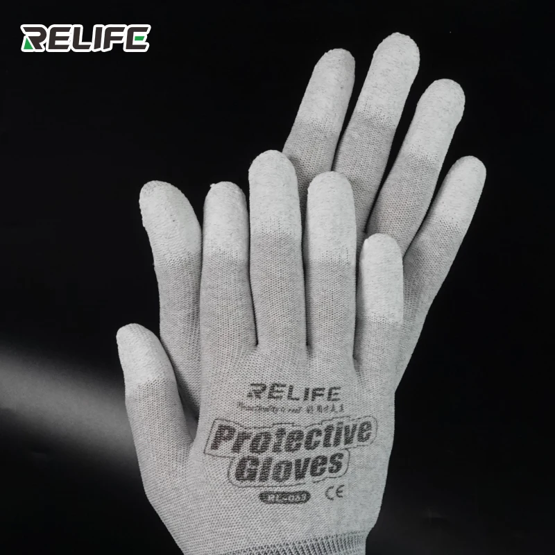 RELIFE RL-063 Антистатическая противоскользящая перчатка с полиуретановым покрытием, часть пальцев, чистые перчатки, вязаные перчатки для ПК, компьютер, телефон, инструменты для ремонта