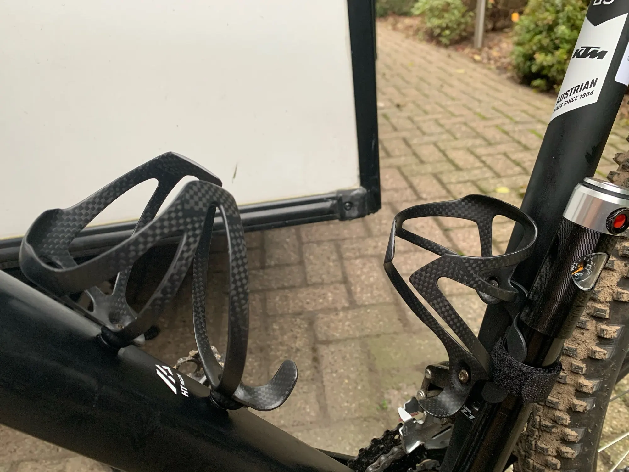 Клетка для бутылок выглядит крепкой, даже если она легкая. Я установлю их и узнаю, могут ли они обрабатывать некоторые удары по дороге.