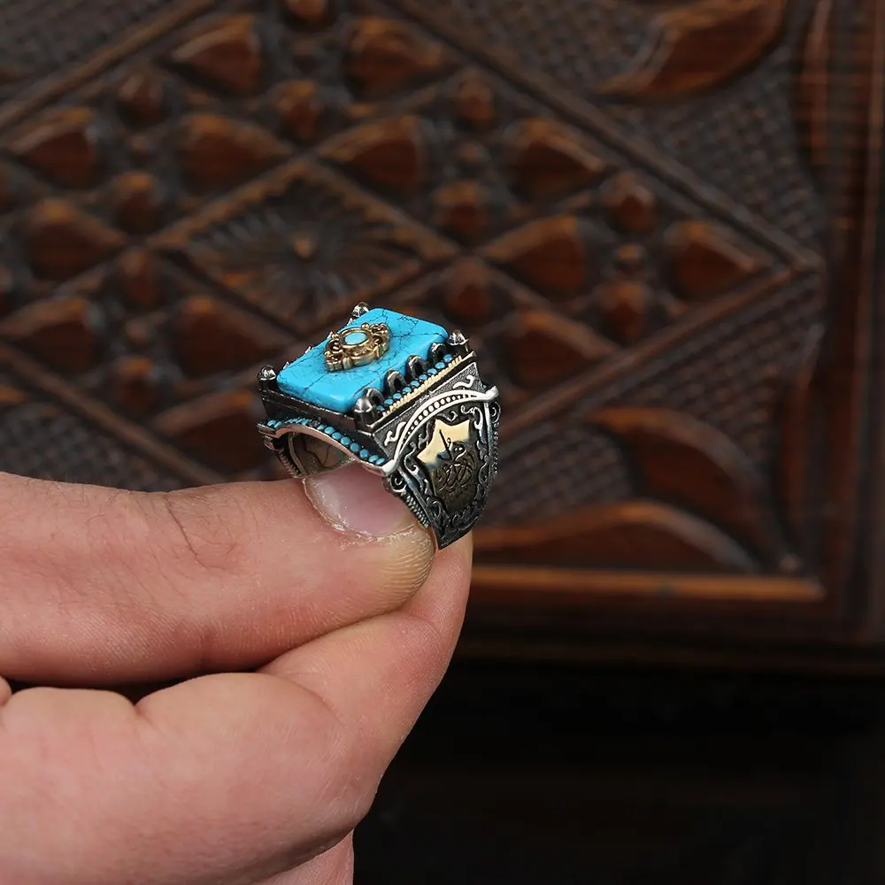 Природные бирюзовый мужское кольцо с камнем Мощность традиционной р...