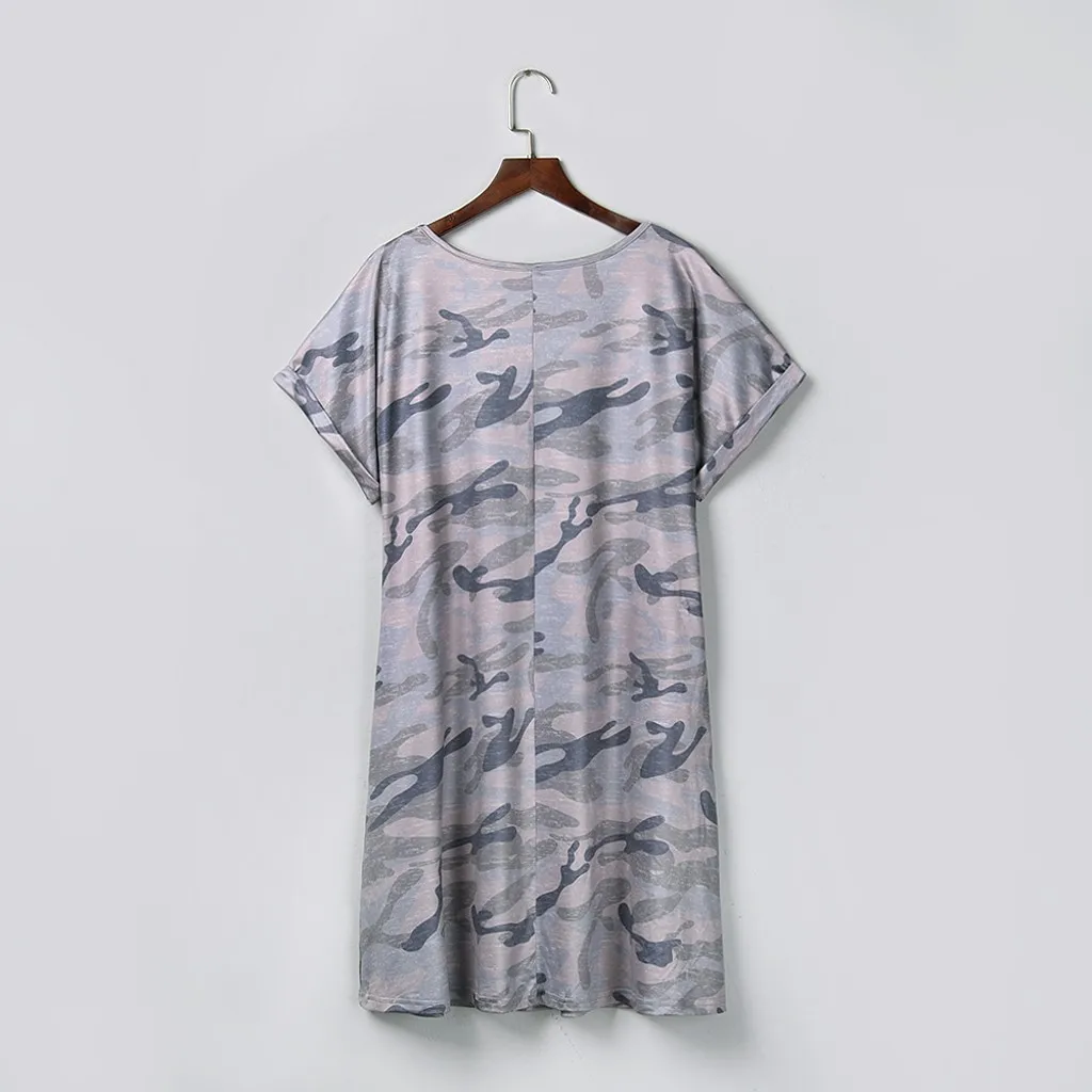Новые летние женские платья с камуфляжным принтом, повседневное свободное платье с коротким рукавом и круглым вырезом, женское мини-платье в уличном стиле, модель 2020 # g2