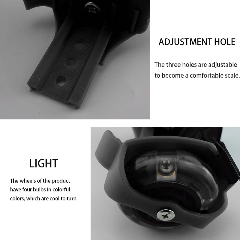Особенности:РегулируемыйМигающий Ролик можно отрегулировать через перекрестный ключ (не входит в комплект). Есть три отверстия для изменения в соответствии с практическим положением.КрасочныеКаждый имеет четыре красочные светильник. Когда колеса загораются, светильник становится прохладным в темноте.БезопасныйКонструкция пряжки может плотно зафиксировать ногу на ролике, чтобы обеспечить безопасность использования. Дно состоит из металлической панели, которая является прочной и безопасной в использовании.ПрочныйМигающий ролик изготовлен из высококачественного ПВХ материала и высокопрочной углеродистой стали, которая является износостойкой и гладкой для работы.Область примененияМигающий Ролик предназначен для детей, который может принести вам счастливое время катания на коньках. Его также можно использовать в качестве подарка для ваших детей.Спецификация:Тип: Мигающий РоликКоличество: 2 шт.Материал: ПВХ + TPR + углеродистая стальЦвет: черный/розовыйСветильник источник света: 4 шт. красочные светильникРазмер: 13*9 см/5,11*3,54 дюйма/(Д * Ш * В)Вес нетто: 610 г/1,34 фунтаПосылка:2 * Мигающий Ролик1 * коробка для посылка
