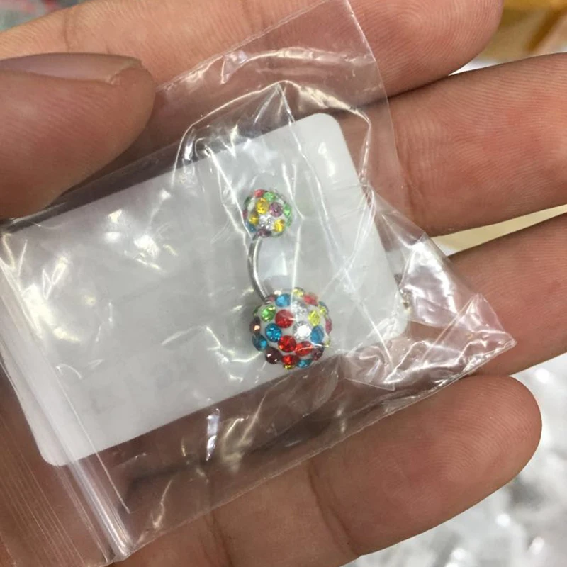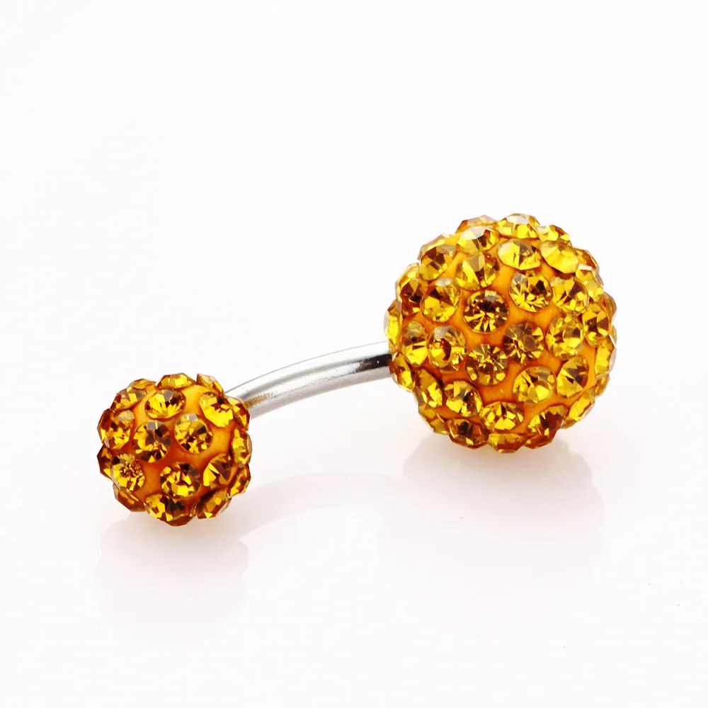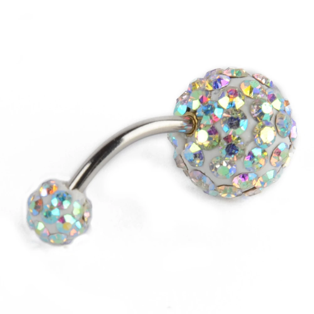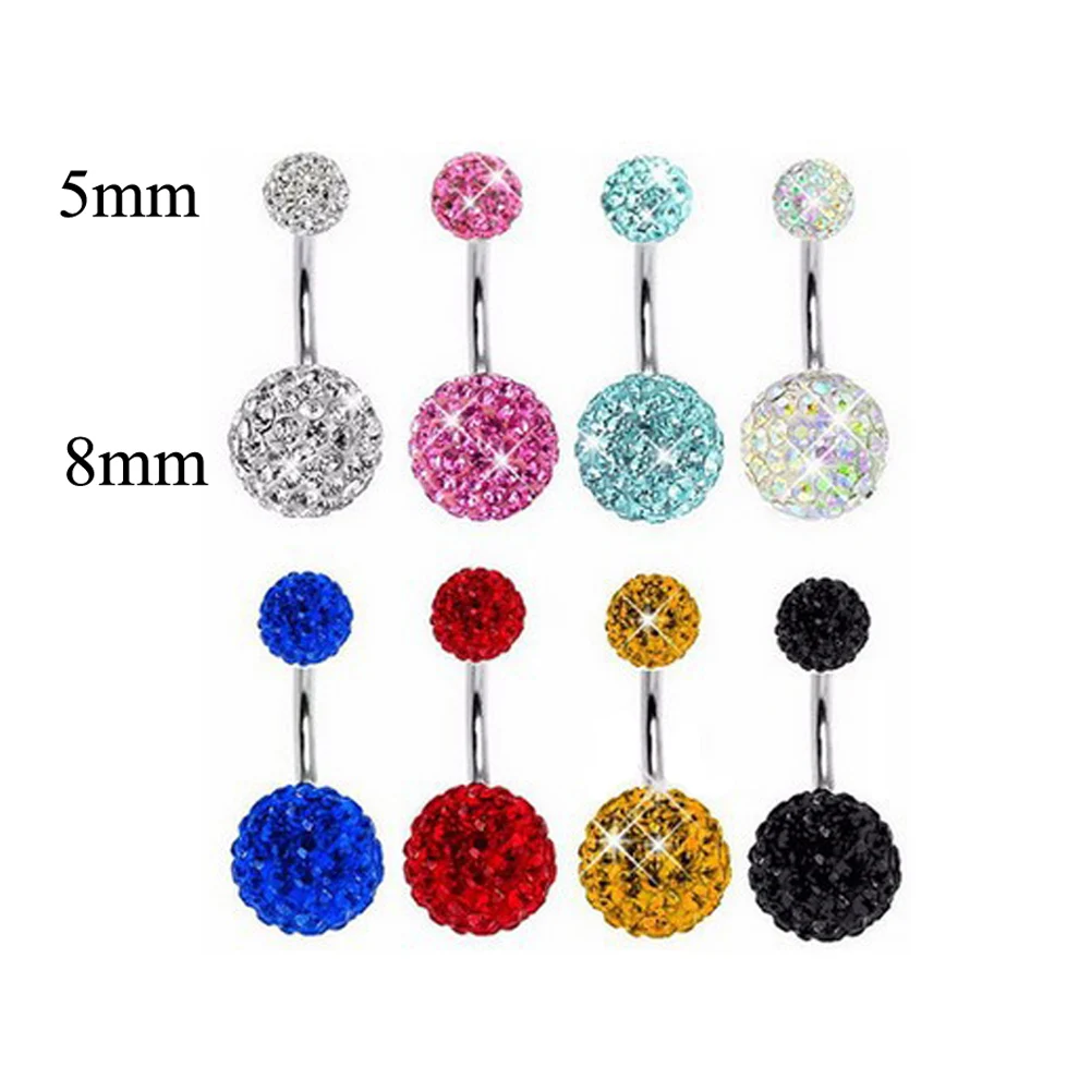Разные цвета кольца для пупка пирсинг для пупка двойная кристальная головка из нержавеющей стали кубический цирконий камень ювелирные изделия для тела