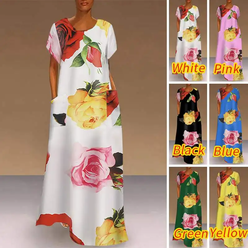 Номер моделиSummer Casual O Neck Short Sleeve Maxi Dress