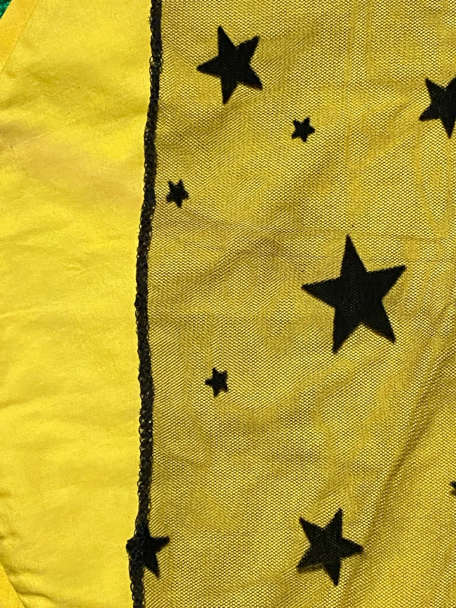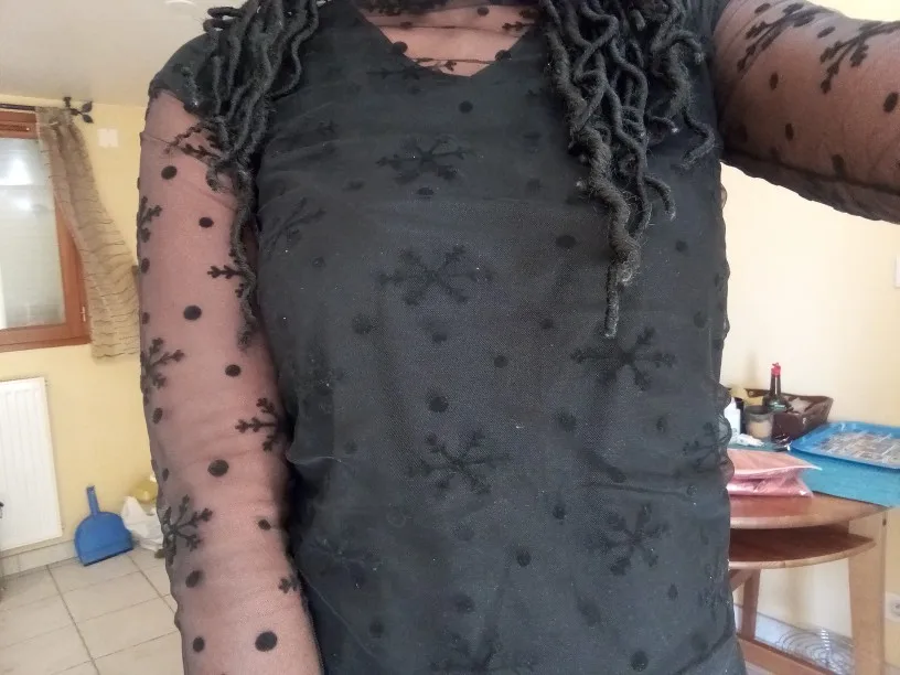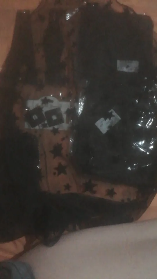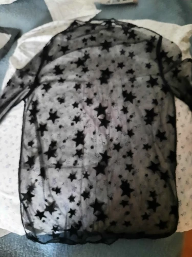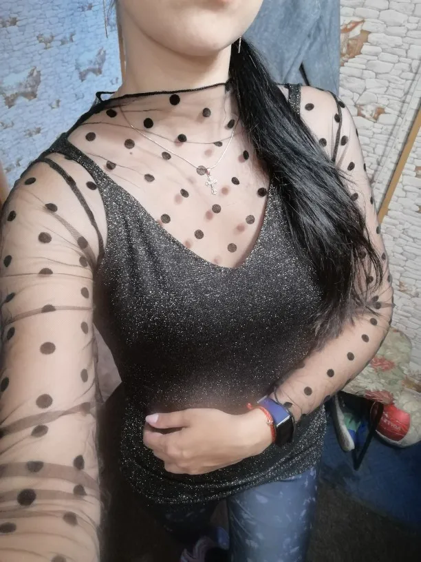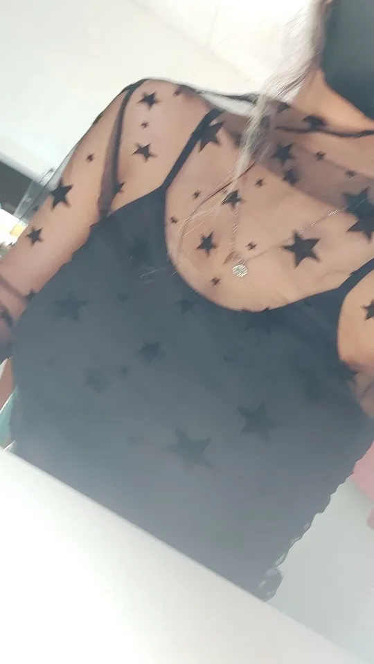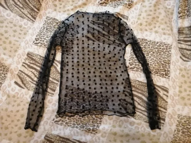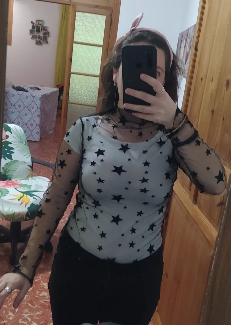 Кофточка для худых и невысоких девушек. Со звёздочками размер ещё меньше чем в горошек. Ткань колючая, вроде не чувствуется пока не шевелишься. Планировала носить поверх майки, придется наоборот, тк она короткая и всё время задирается...Ну за эту цену пойдёт.