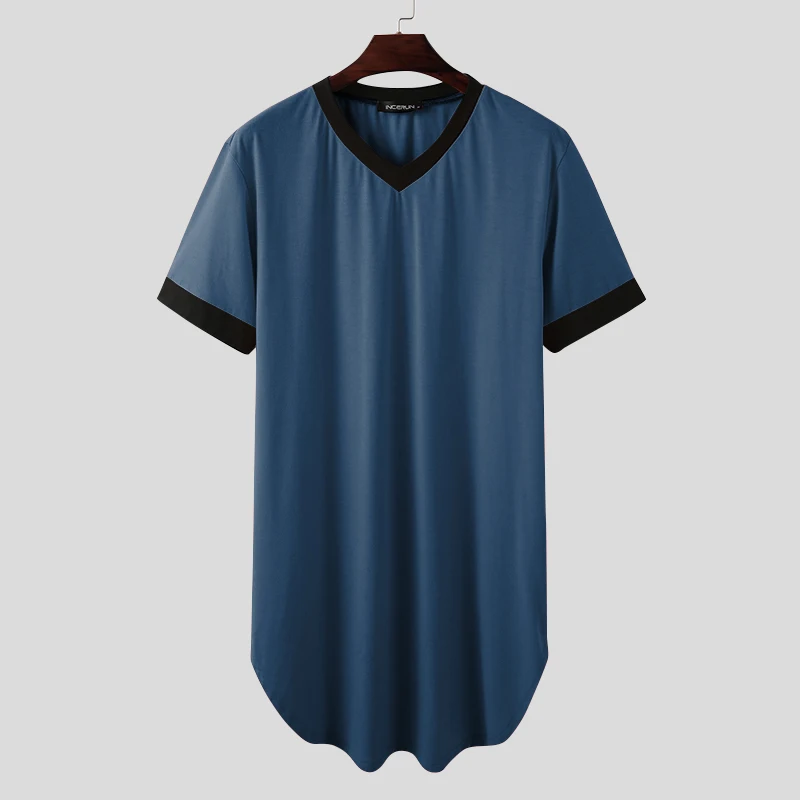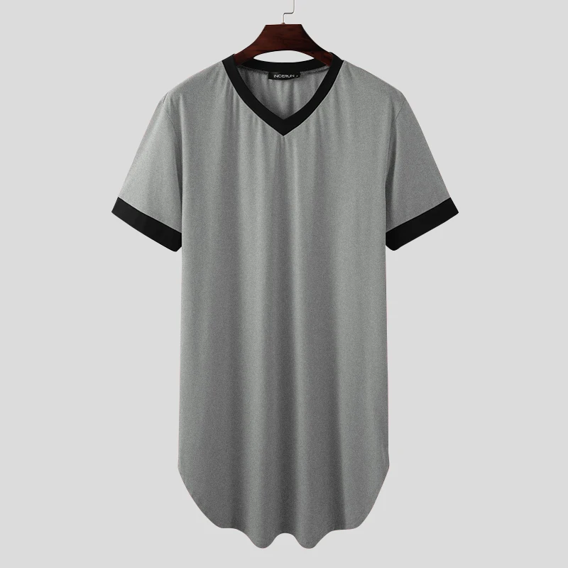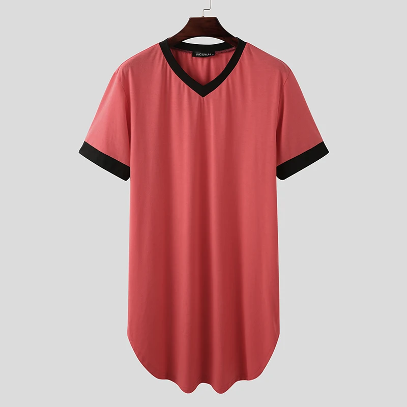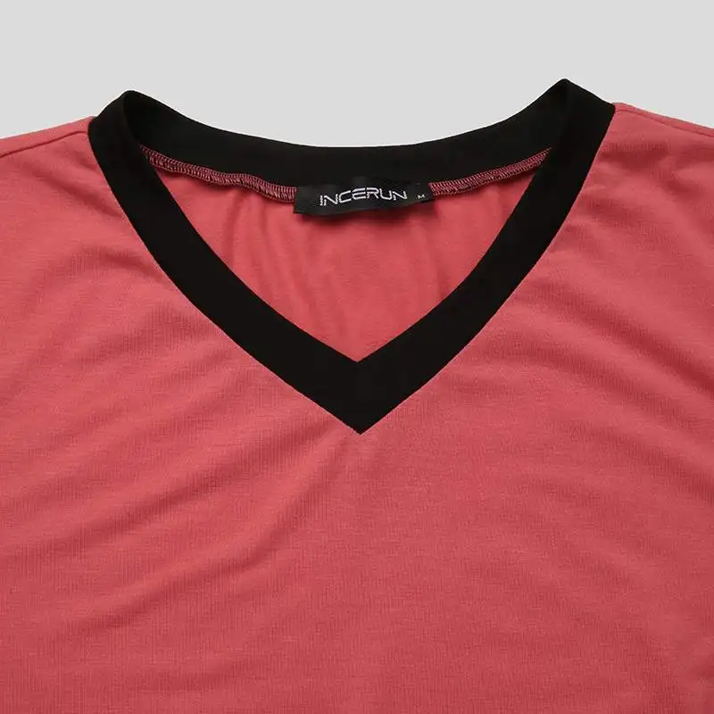 Ночная рубашка мужская INCERUN, однотонная, с коротким рукавом, с V-образным вырезом, S-5XL