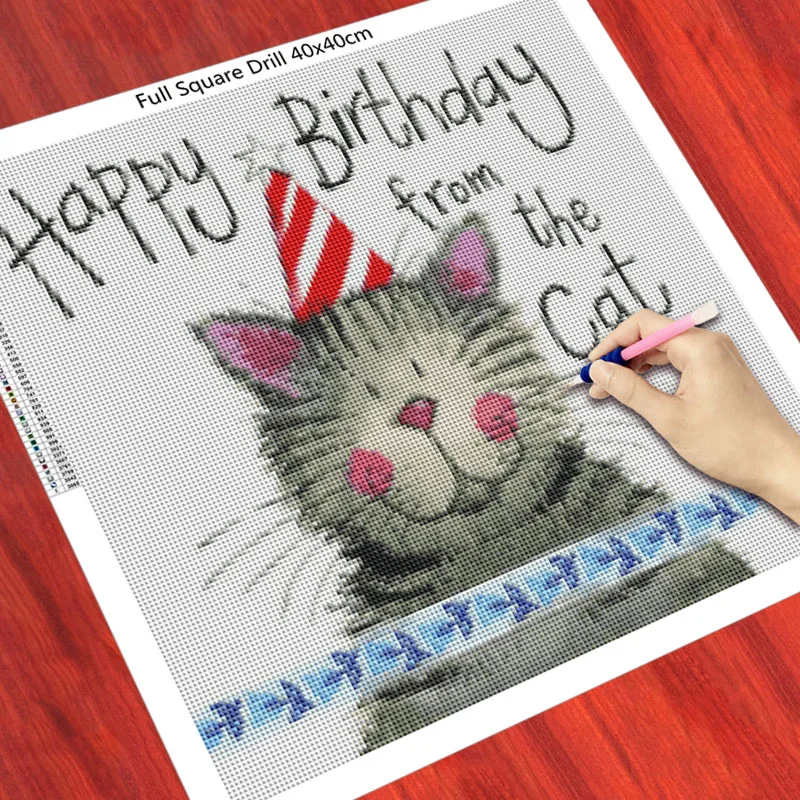 Полный Круглый Бриллиантовая мозаичная фигурка животного милый котенок DIY Алмазная вышивка крестиком на рисунке, с рисунком кота из мультфильма камни в форме ромба Лебедь вышитые алмазами
