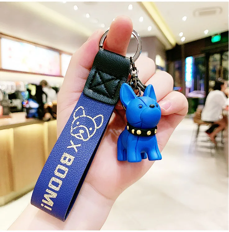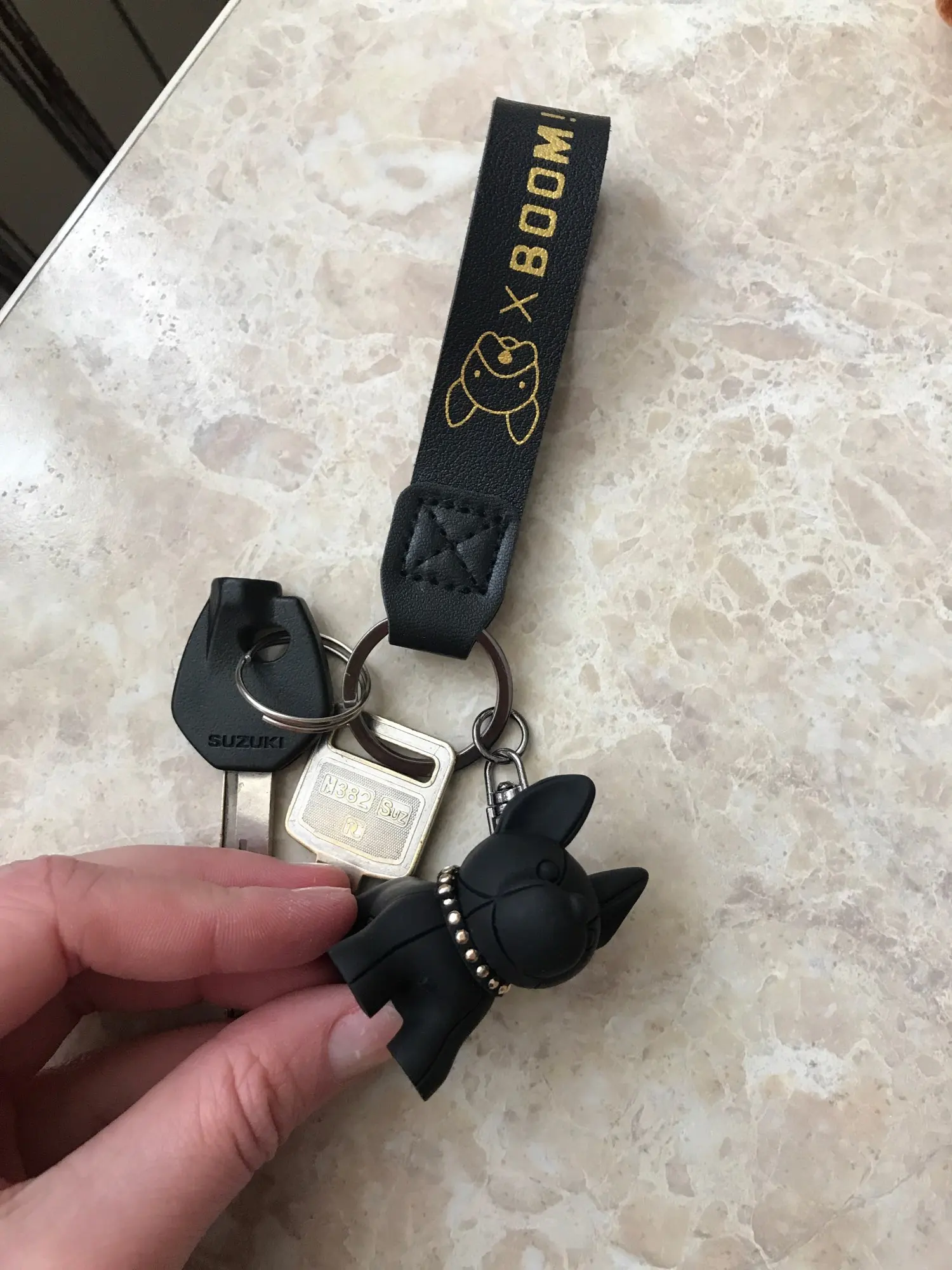 Брелок для ключей, из искусственной кожи, в стиле панк, французский Бульдог