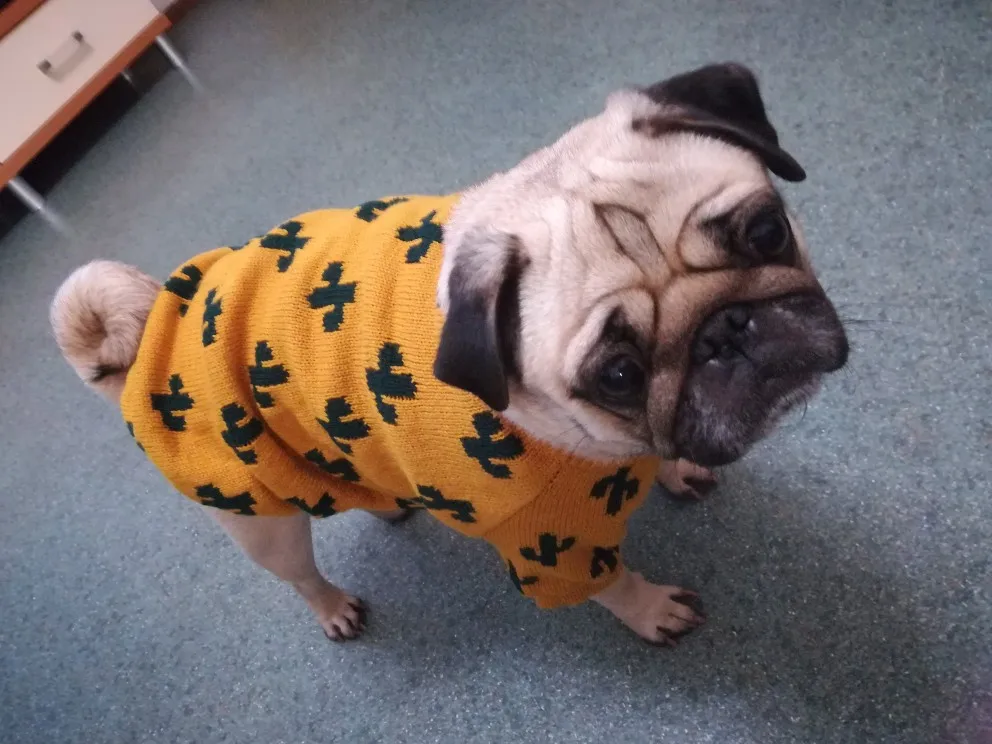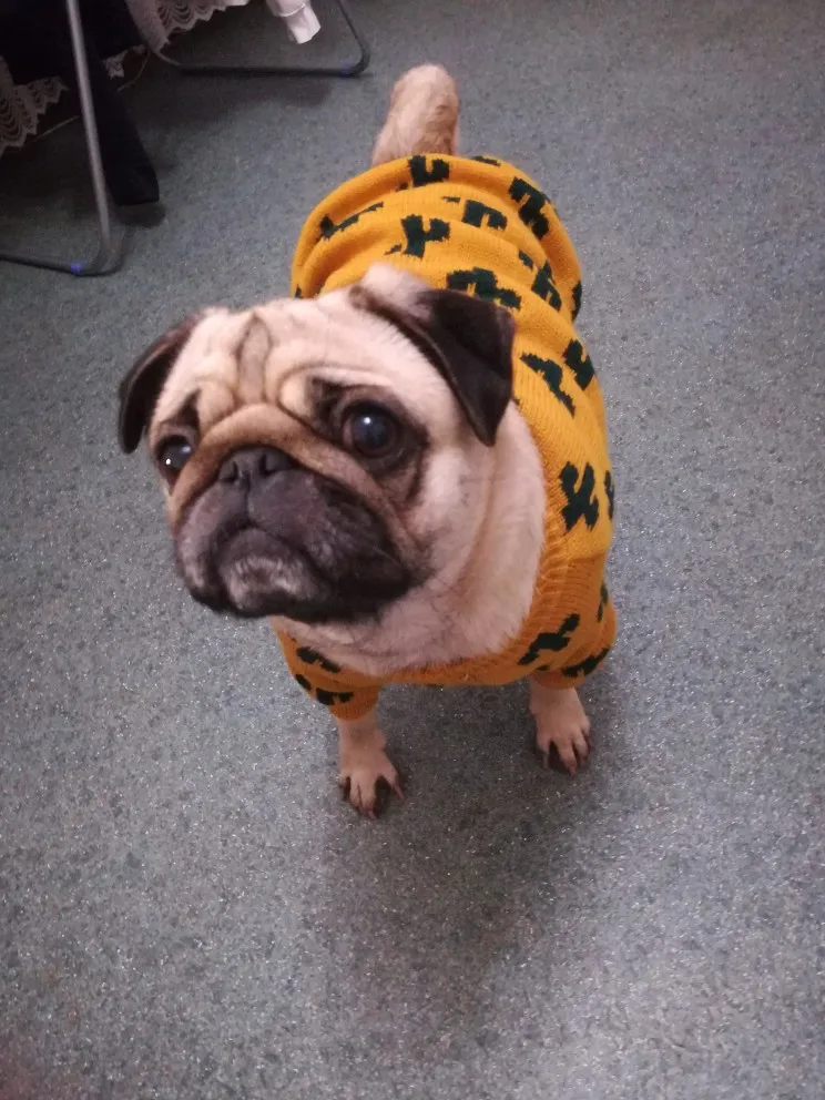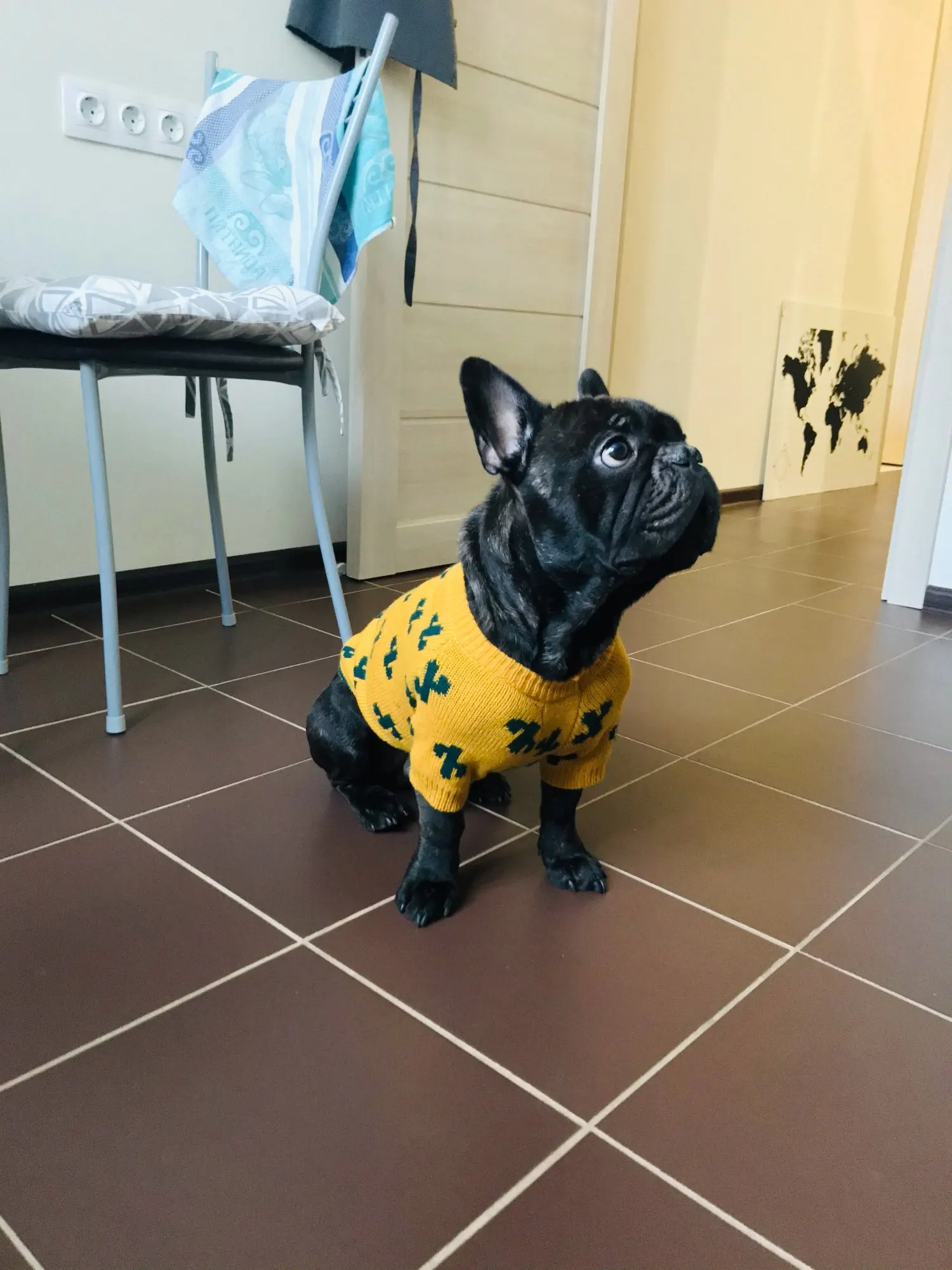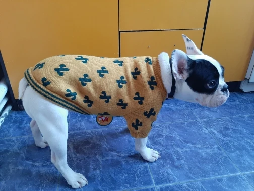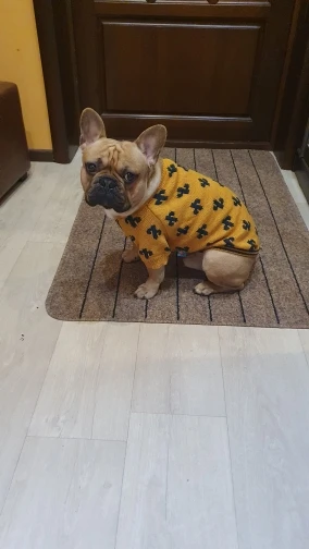 Чудесный свитер! Качество отличное ! На 8ми месячного французского бульдога взяла самый большой размер- сидит свободно, на вырост )