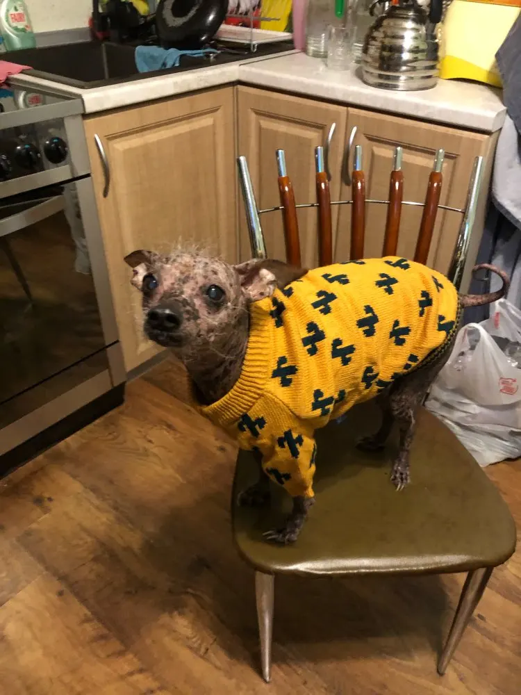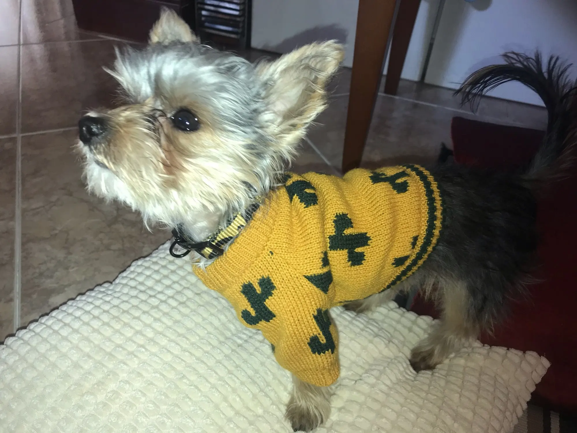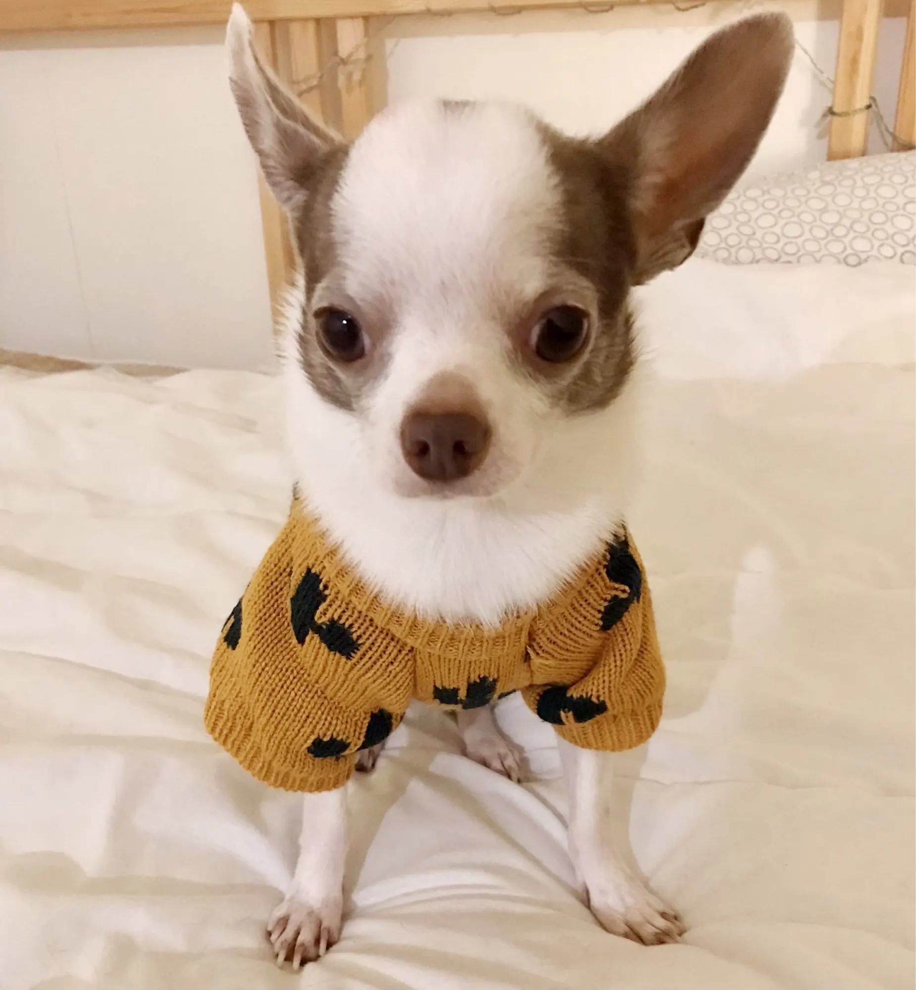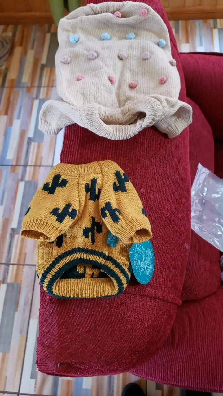 Замечательный свитер! Собачке в нем комфортно, что самое важное. На чихуахуа 2 кг выбрала размер XS, советую измерить параметры перед выбором размера. Качественная вещь, красивая. Сшита очень аккуратно. Доставка быстра, 2 недели. Осталась довольна товарами.