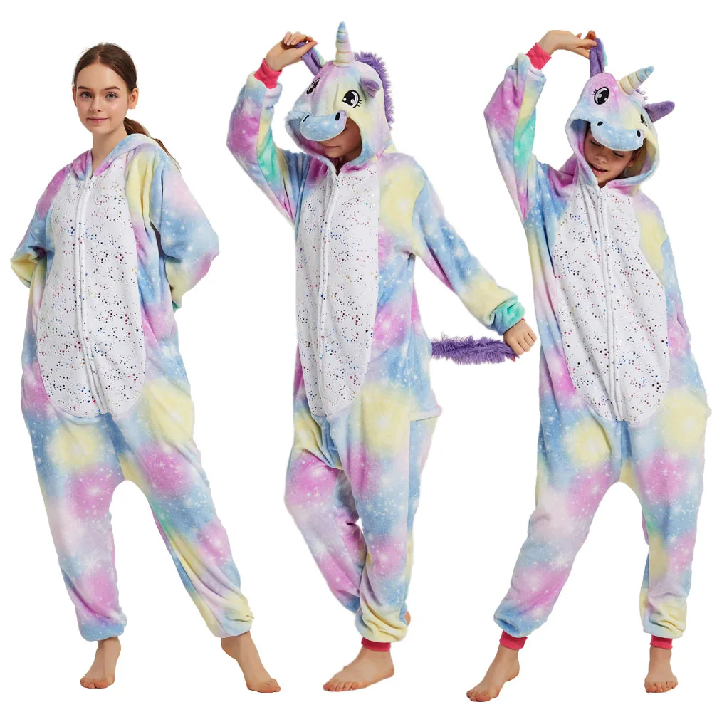 Зимняя фланелевая теплая цельная Пижама-кигуруми с капюшоном в виде животного из мультфильма Единорог Косплей комбинезон Женская Пижама домашняя одежда