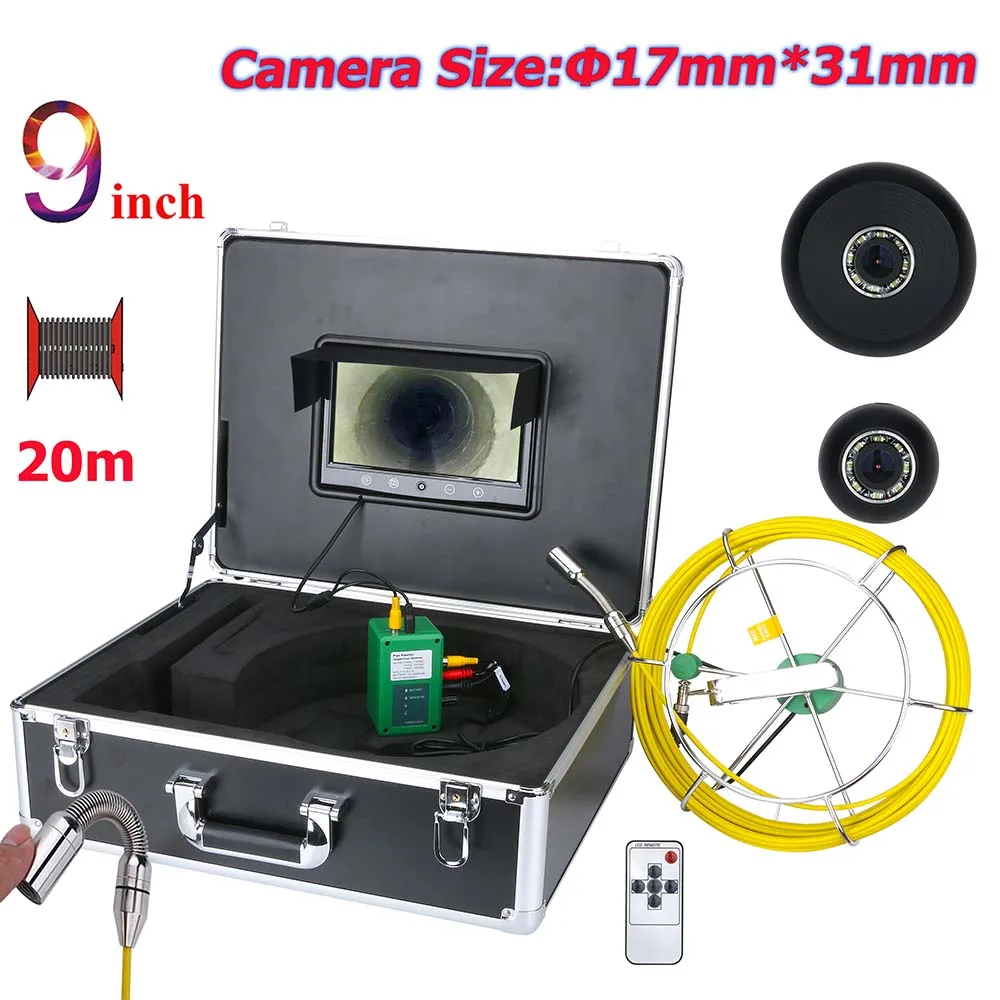 20 м 9 дюймов 17 мм промышленная труба канализационная инспекционная видеокамера IP68 Водонепроницаемая дренажная труба канализационная Инспекционная камера система 1000 ТВЛ камера с 8 шт. светодиодный светильник