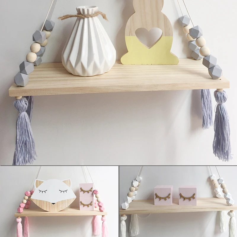 Скандинавский декор для детской комнаты, полка с кисточками, настен...