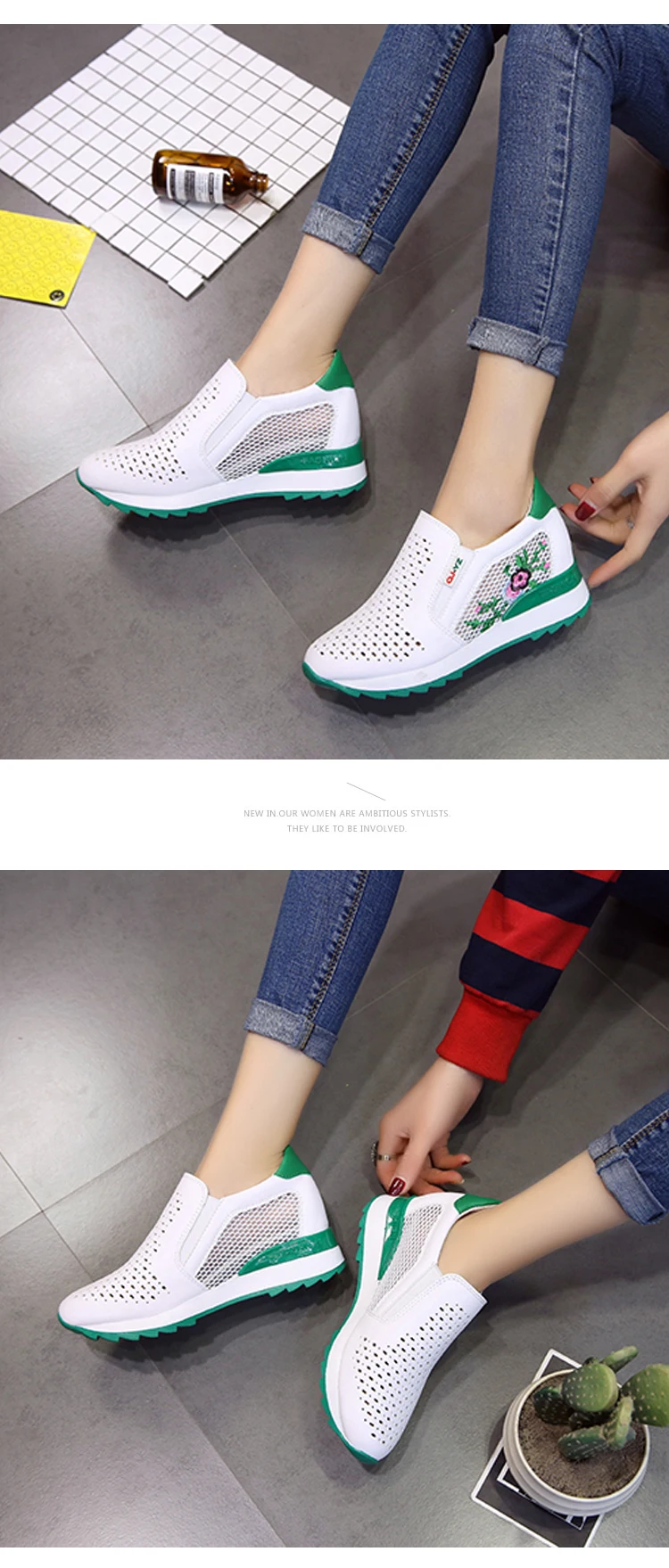 Кроссовки женские без шнуровки, повседневные туфли, лоферы, с цветами, с вырезами, белые, Размеры 35-40, лето-весна