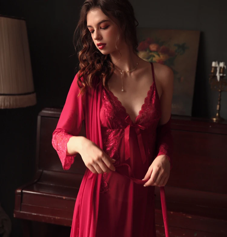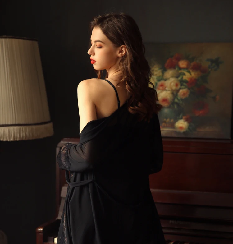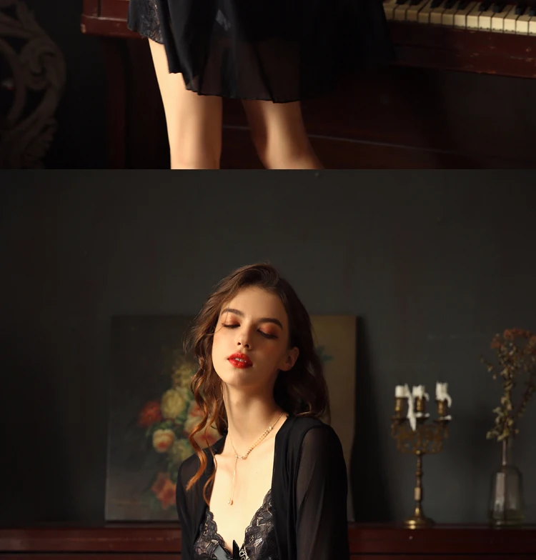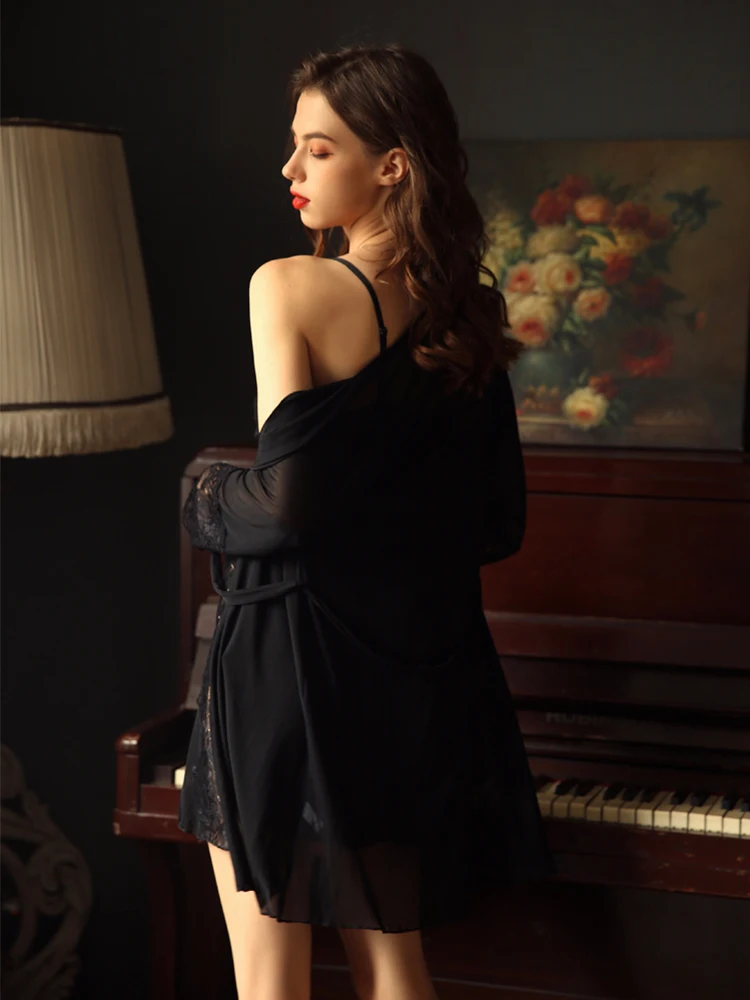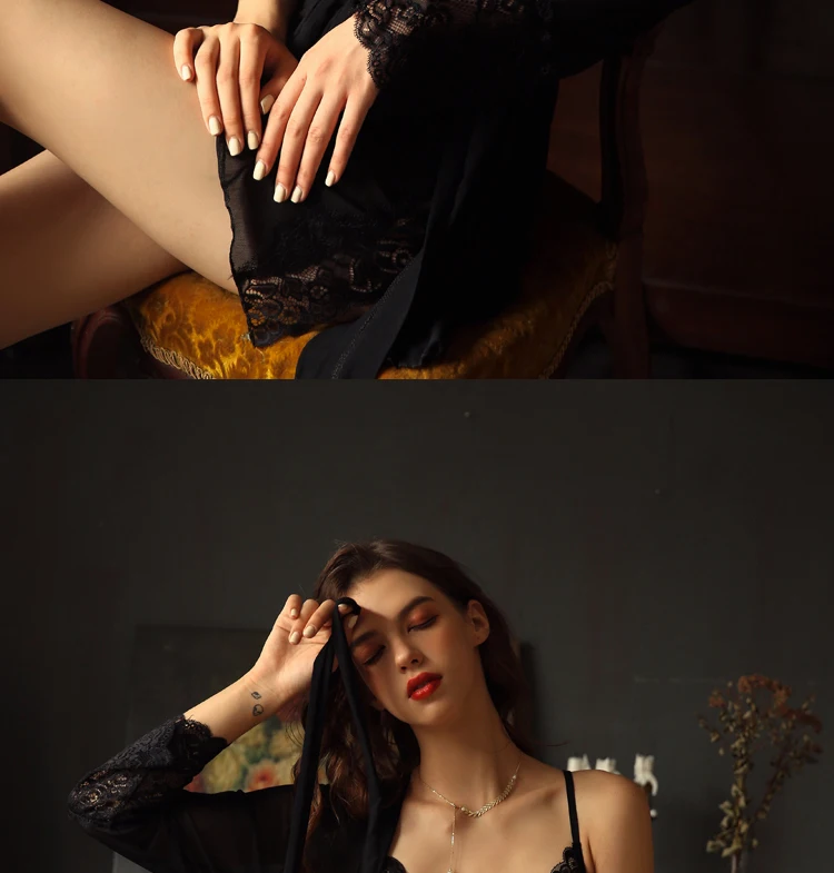 Пижамный комплект, сексуальная ночная рубашка большого размера и юбка на бретелях, тонкая сетка, Прозрачная Кружевная Пижама для женщин, одежда для сна большого размера