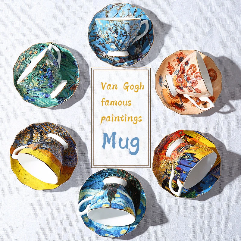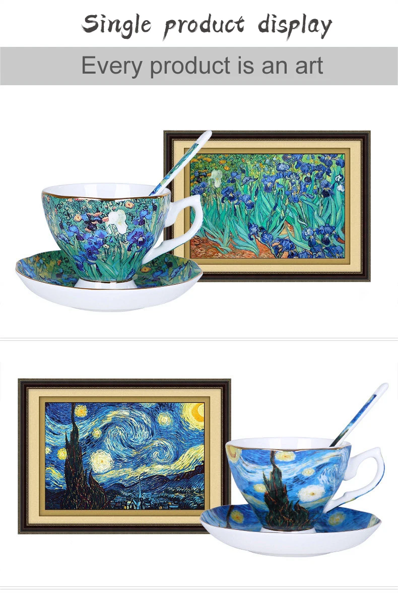 Кофейная чашка и блюдце со звездами Ван Гога, домашняя керамическая посуда, китайская английская чашка для послеобеденного чая, чайный набор с ложкой