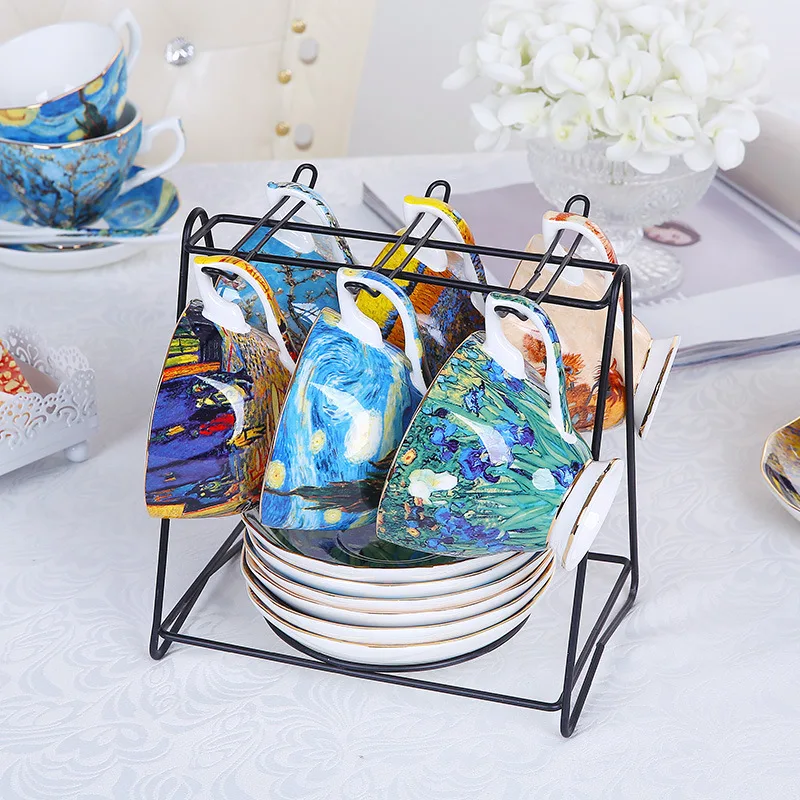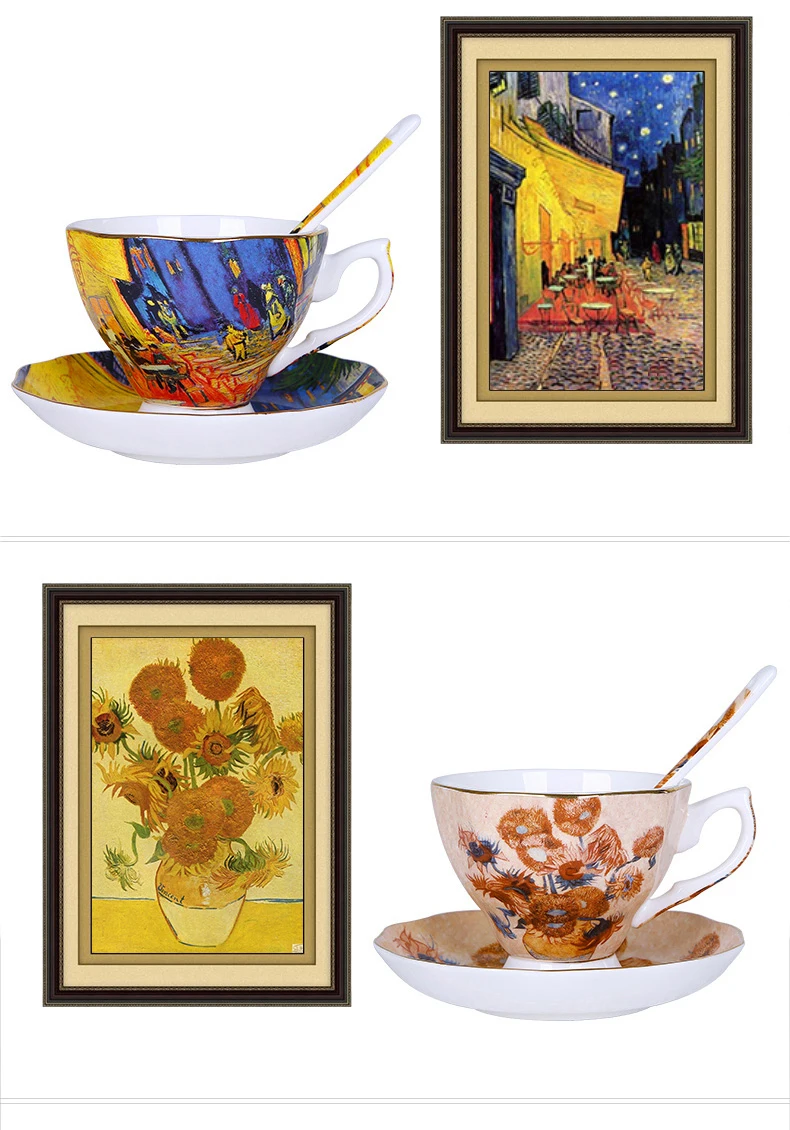 6 комплектов кофейная чашка Ван Гога-блюдце-ложка в комплекте с жел...