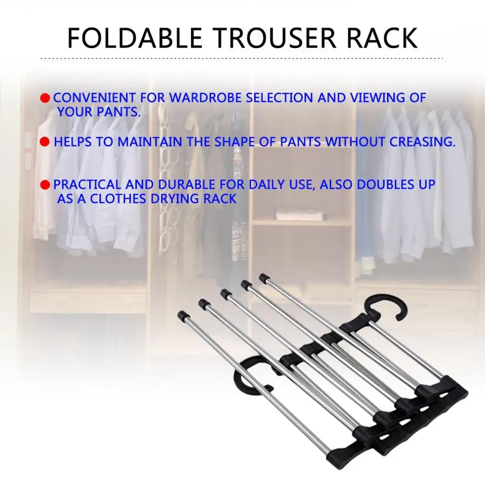Особенности:Положите, чтобы отдых ваши брюки упаковки woes с гениальным многофункциональным 5 способ брюки вешалка.Волшебные вешалки для брюк сэкономят вам пространство и время, когда вы соберете брюки, шарфы, шали, галстуки и джинсы.Удобно для выбора гардероба и просмотра ваших брюк.Помогает поддерживать форму брюк без складок.Практичный и прочный для ежедневного использования, также удваивается как сушилка для одежды