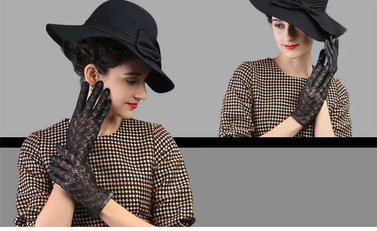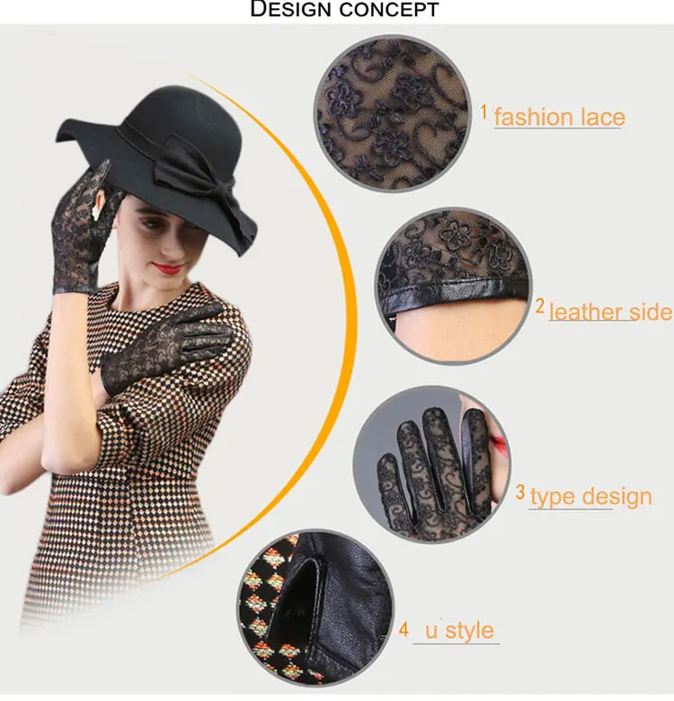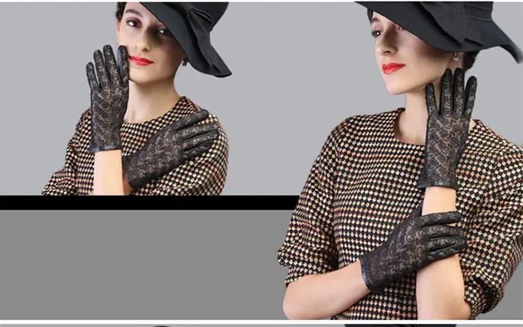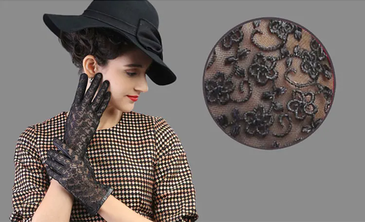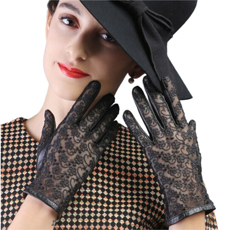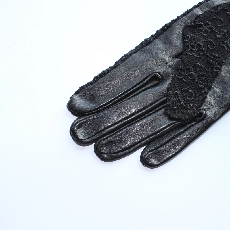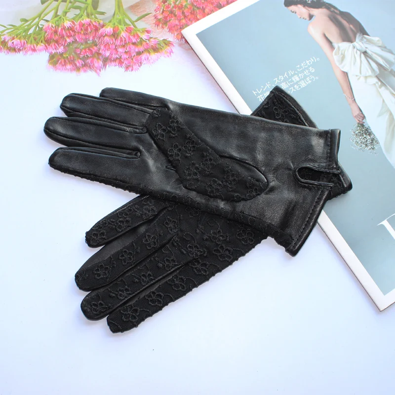 Перчатки женские кожаные черные, без подкладки, с вышивкой, для сенсорного экрана, весна-лето
