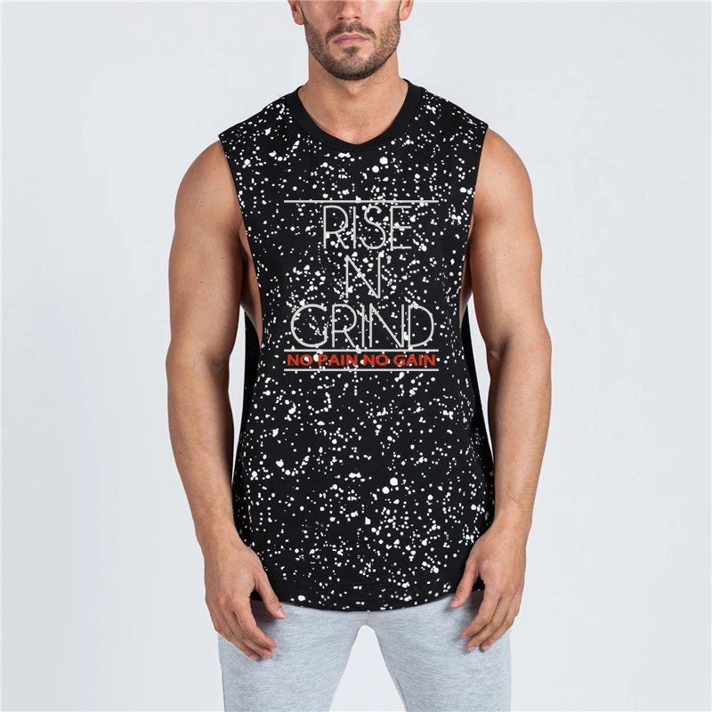Мужские хлопковые майки без рукавов с круглым вырезом, Майки с надп...