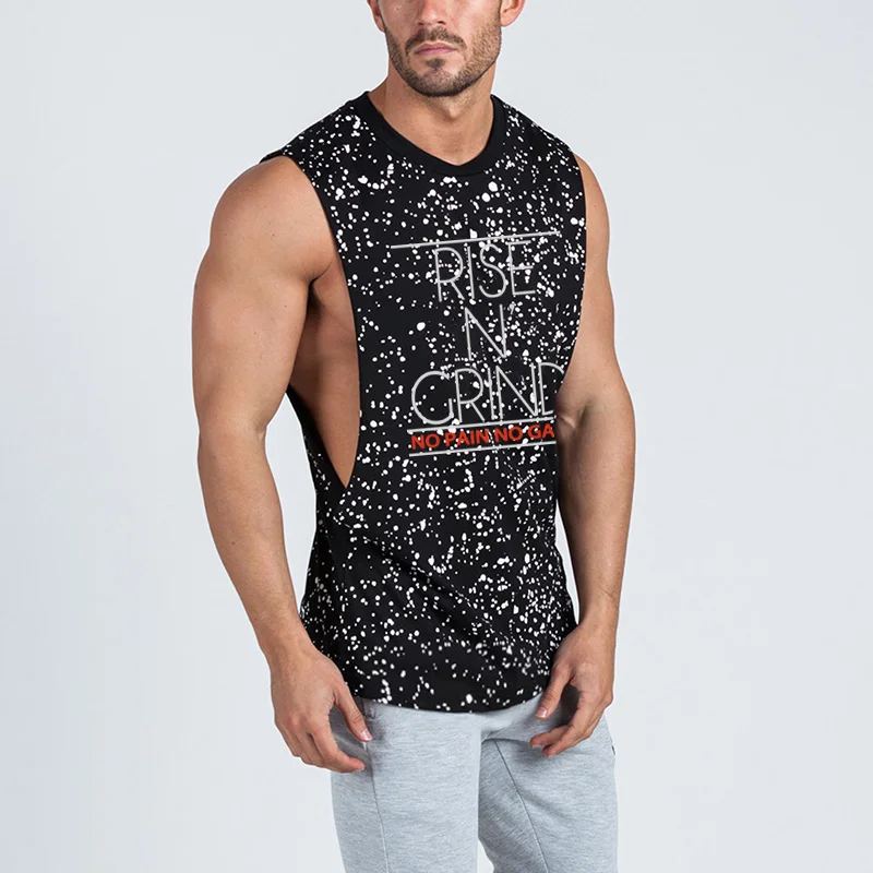 Майка для фитнеса мужская, летняя, 100% хлопок, с вырезами по бокам